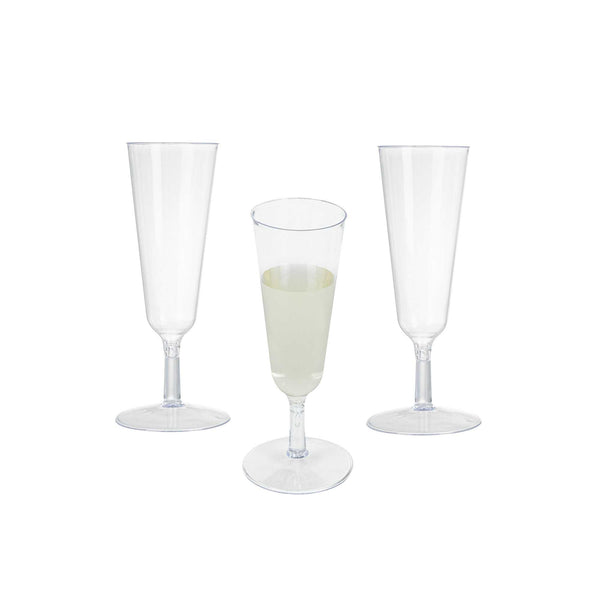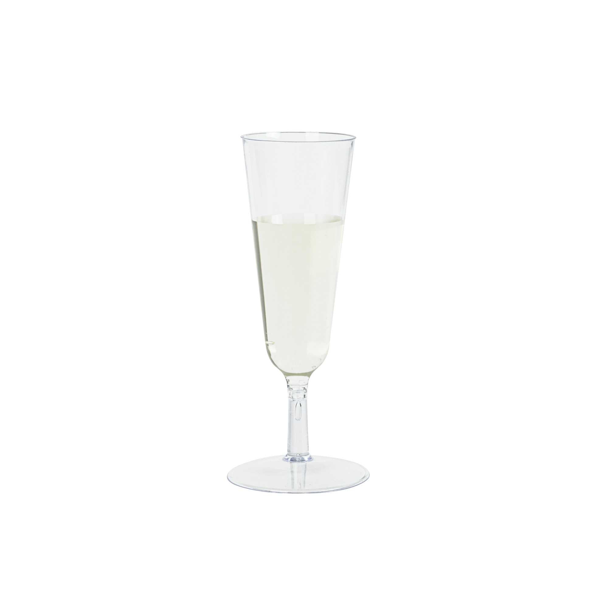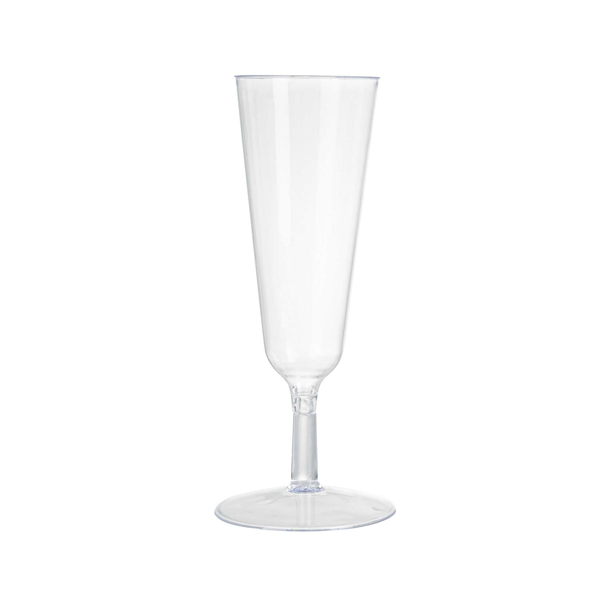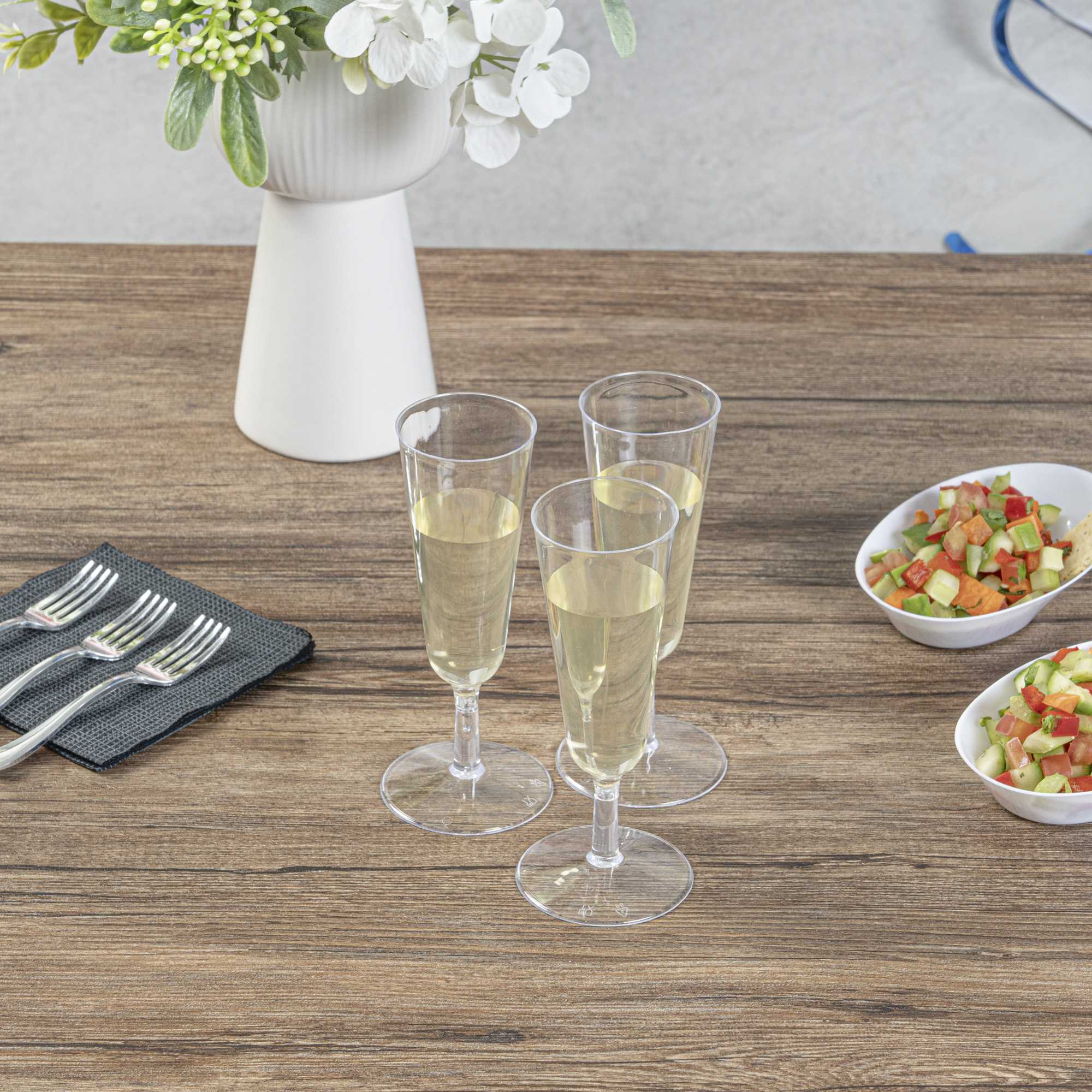 Add a sparkling touch to any special event withour Bev Tek 2-ounce Round Clear Plastic Mini Champagne Glasses. Perfect for small servings of champagne or cocktails, these mini champagne flutes are ideal for making toasts at wedding receptions, parties, galas and other catered events. Their miniature size makes for a fast and convenient way to serve champagne, while their classic design adds an elegant touch to drink presentations. Made from recyclable plastic, these plastic flute plastic have a clear finish to showcase your colorful cocktails and bubbly drinks. These 2-piece champagne flutes are shipped unassembled for space-saving storage at your foodservice establishment. When you’re ready to use these small plastic champagne glasses, simply press the stem into the base to complete their assembly. With a rounded base and sturdy stem, these small champagne flutes provide superior stability when placed on trays or tables to avoid spills. Containing up to 2 ounces, these plastic flute glasses measure 2 inches in diameter and 5 inches in height. Shipped in a 100 count box.
