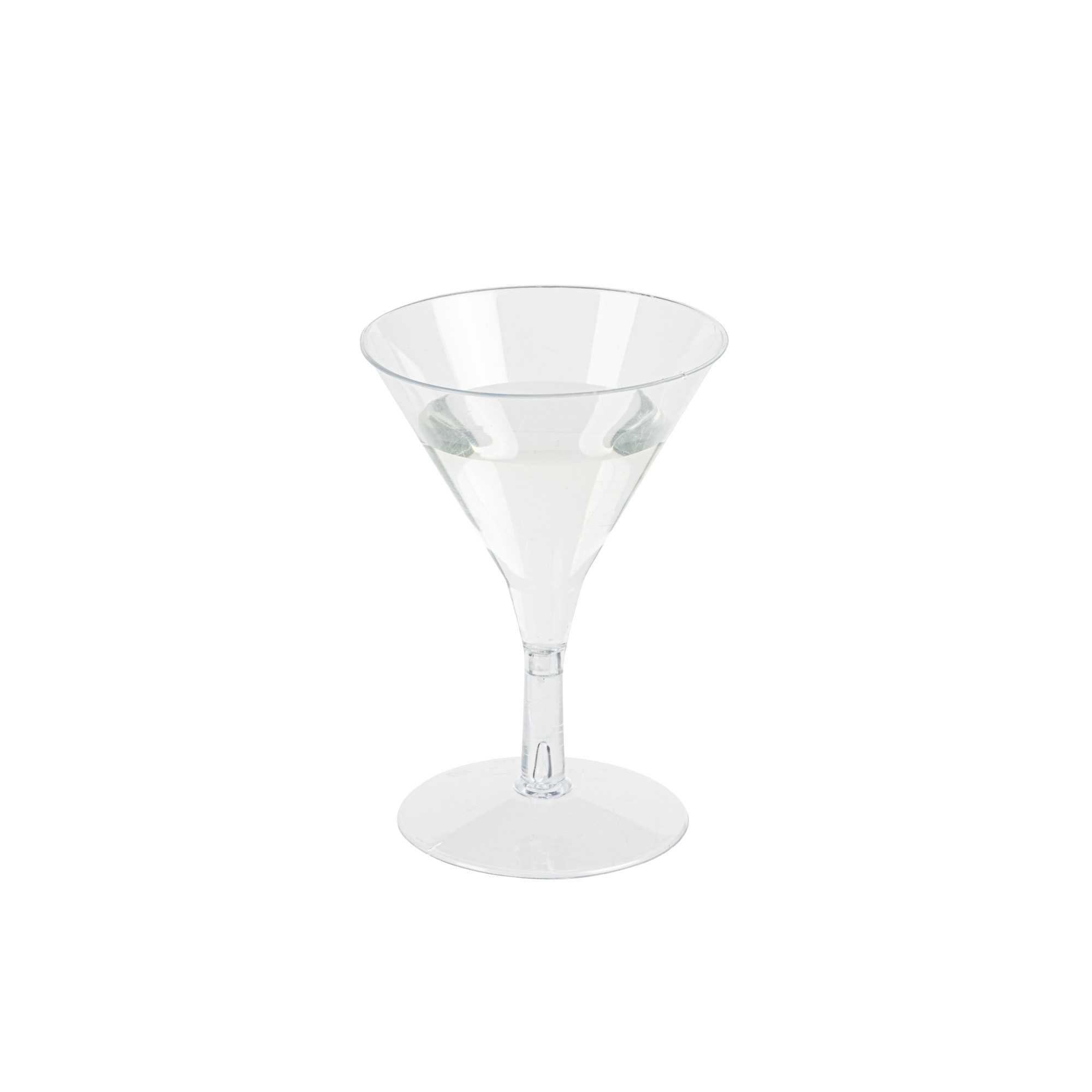 Serve outstanding mini cocktails inour Bev Tek 2-ounce Round Clear Plastic Mini Martini Glasses. With an attractive design, these mini plastic glasses are the perfect serving solution for miniature dessert courses and specialty cocktail tastings at special events and catered parties. These plastic cocktail glasses come unassembled in 2 pieces to save storage. Made from premium plastic, these mini martini glasses are conveniently disposable and recyclable. With their crystal clear construction, these mini martini glasses are designed to beautifully showcase your desserts, appetizers, cocktails, and more. Each of these mini cocktail glasses measures 2.5 inches in diameter by 3.75 inches in height and has a capacity of 2 ounces. Shipped unassembled in a 100 count box.