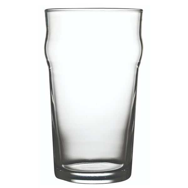 Pour your brews intoour Bev Tek 20-ounce Imperial Nonic Pint Glasses. These nonic pint glasses are the same ones used in English and Irish pubs to give your ales and lagers a classic look. Great for rowdy crowds, these English pub glasses have an ergonomic shape to improve grip and reduce chipping to give you peace of mind during a busy happy hour. Constructed with taste in mind, the wide rim on these beer glasses keeps a thick frothy head for your customers to enjoy. The bulge near the top of these nonic pints allows you to stack them in cabinets and counters to save you space. These nonic pints are expertly crafted from lead-free tempered glass, which makes them durable enough for commercial dishwashers. Suited for everyday use, these traditional beer glasses are perfect for pubs, bars, hotels, and restaurants.
