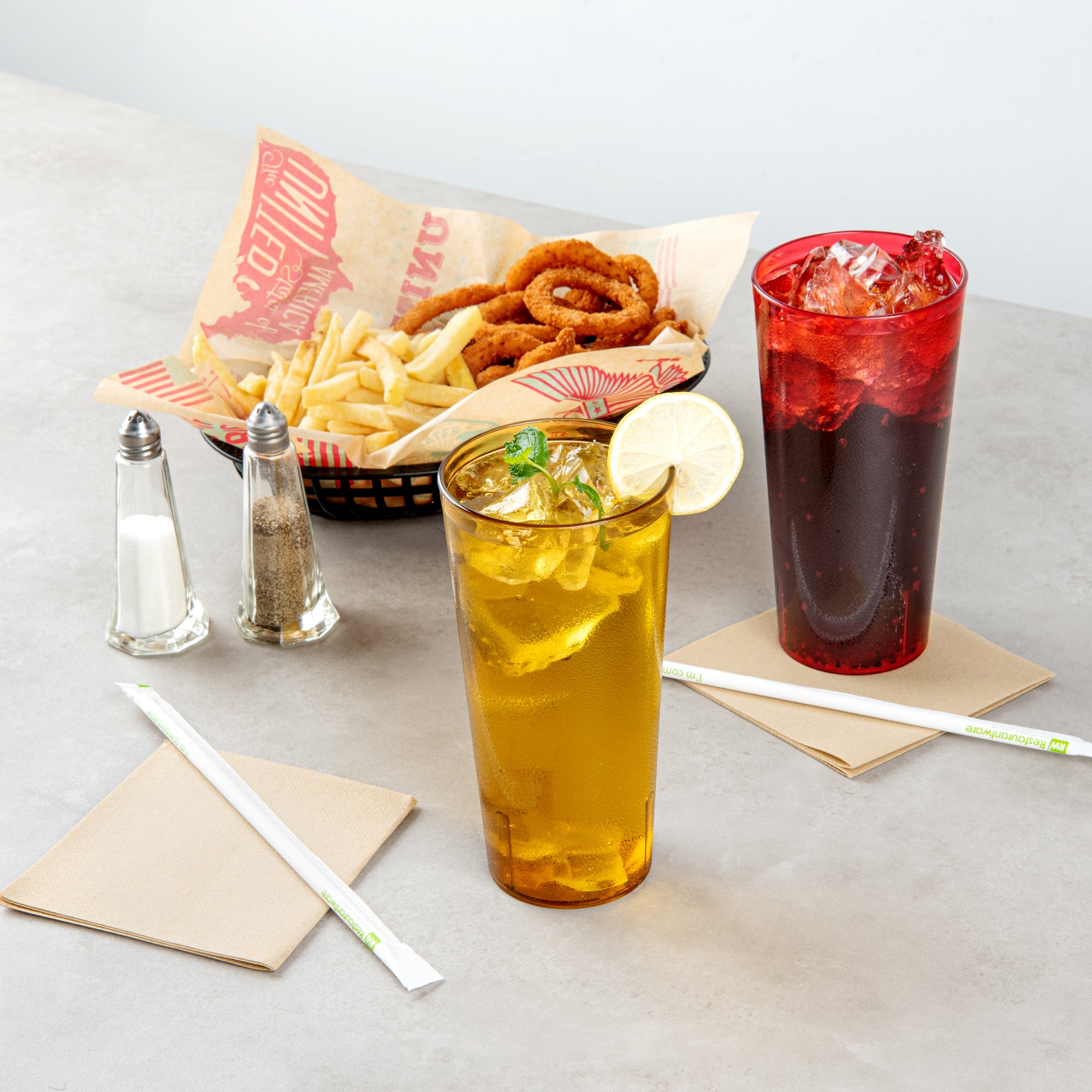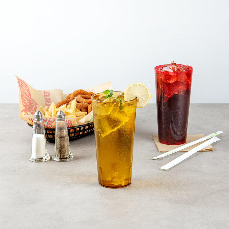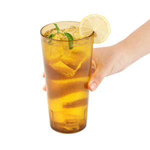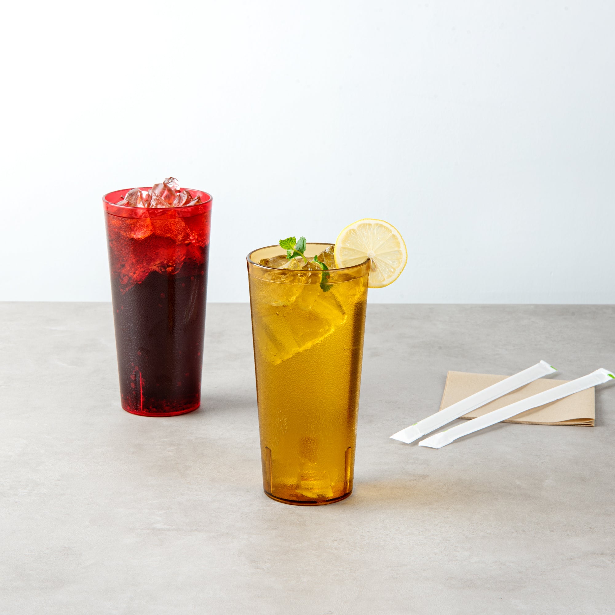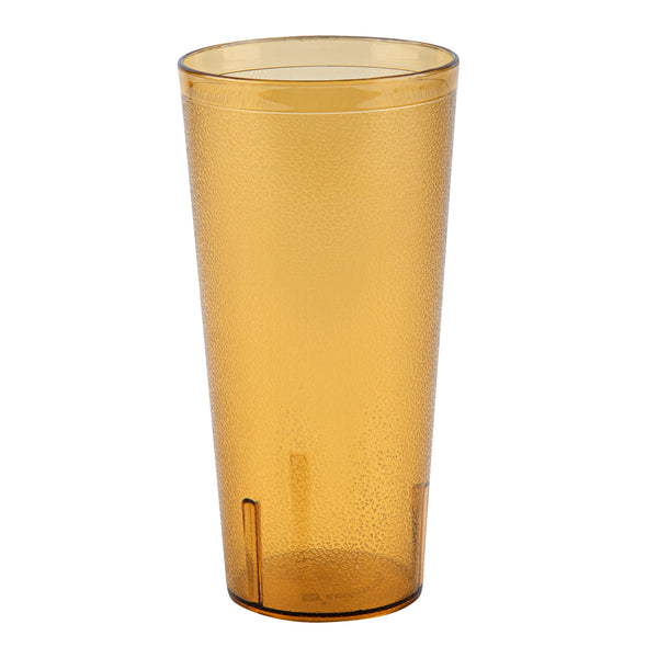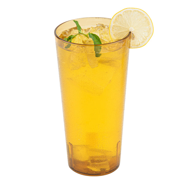 Enhance your beverage service with stylish, break-resistant drinkware. The Bev Tek Pebbled Texture Plastic Drinking Glass features a durable SAN plastic construction that withstands daily use, ensuring longevity in high-traffic environments. The pebbled finish not only provides an upscale textured look but also ensures a secure grip, reducing spills during busy service hours. Its vibrant amber hue elevates drink presentation, making it a perfect amber plastic cup for casual dining or poolside events. With a substantial 24-ounce capacity, this glass allows for serving large beverages, minimizing the need for constant refills and enhancing customer satisfaction. Dishwasher-safe, it facilitates quick and efficient cleaning, saving time and labor costs in bustling kitchens. Designed to be stackable, it maximizes storage space, a crucial asset in compact restaurant operations. Elevate your drinkware collection today with these versatile plastic drinking glasses. Sold in a 50 count box.
