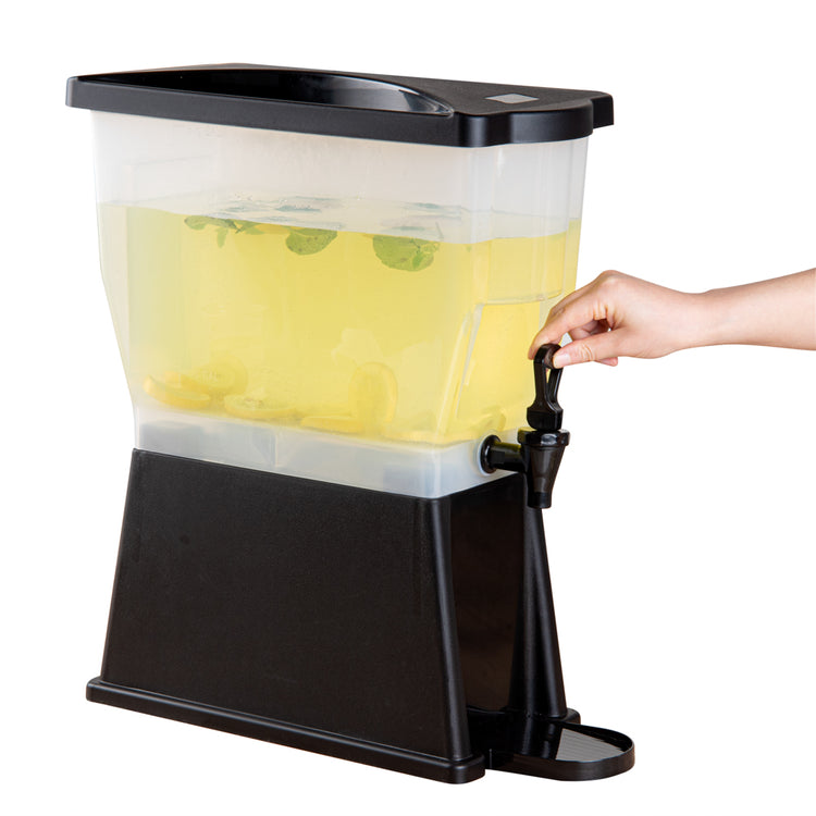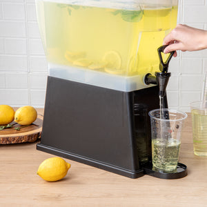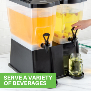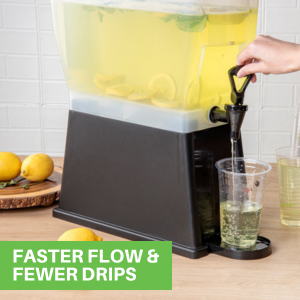 Equipped with a push-button spigot, these beverage dispensers cut off the liquid flow once you release the faucet, avoiding drips or unsolicited leaks. Drip tray at the bottom catches drips while operating!