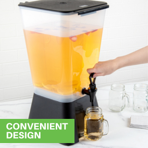 The tank of each drink dispenser is detachable from the base to make refills easier. The translucent tank shows off the vibrant colors of your signature drinks.