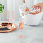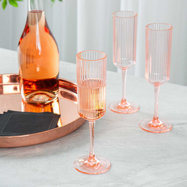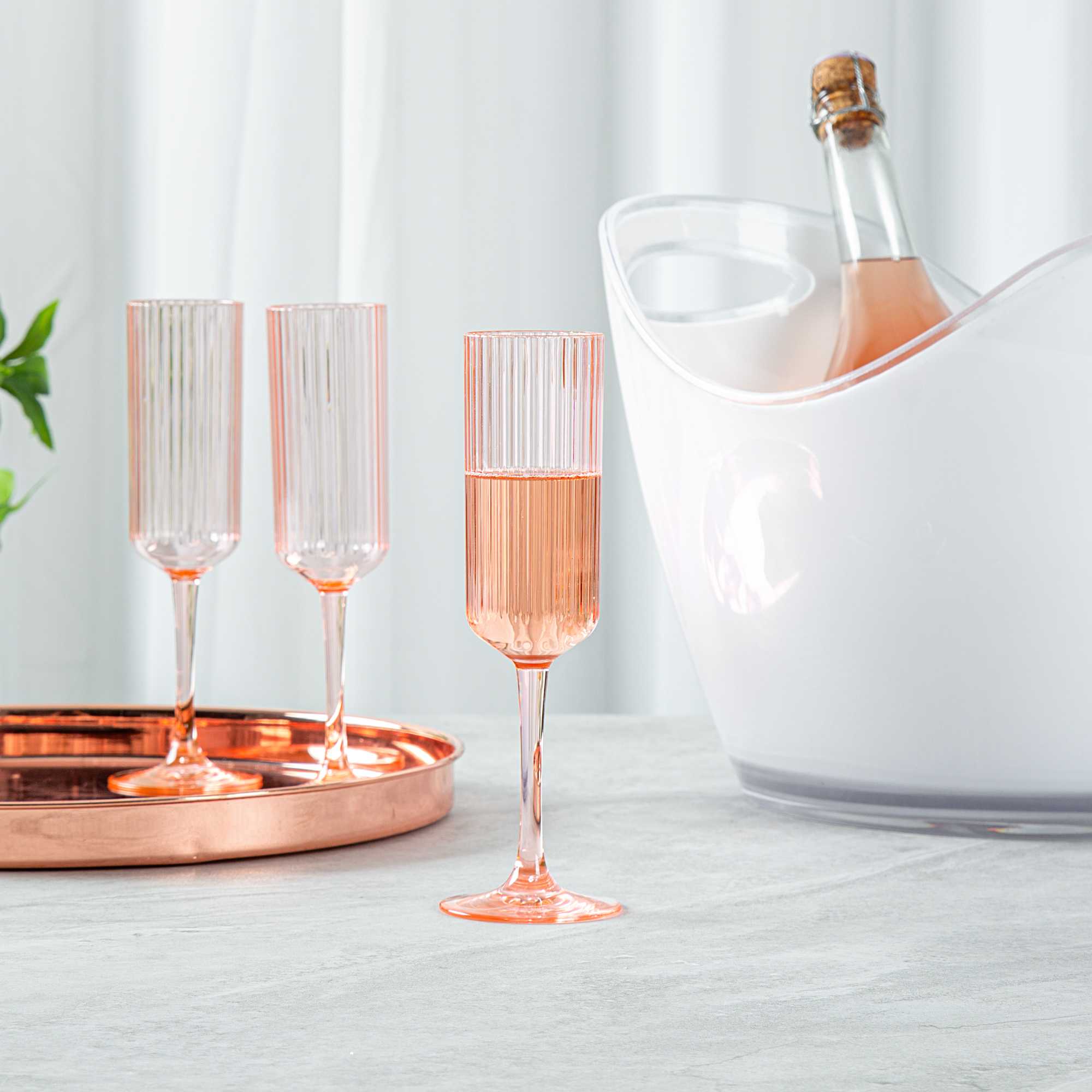 Enhance your beverage presentation with elegance and practicality. The Bev Tek Shatter-Resistant Pink Plastic Champagne Flutes combine style and safety, making them the ideal choice for upscale events and bustling restaurants. These pink champagne glasses feature a thick heavy design, perfect for maintaining stability during service in hotels and restaurants. Made from durable plastic, these flutes are dishwasher safe, ensuring a swift and efficient cleanup process in busy kitchens. With a BPA-absent construction, these acrylic champagne glasses guarantee safe beverage service for your guests. Measuring 8.2 inches in height, these flutes provide a sophisticated appearance suitable for any occasion. Invest in these pink champagne glasses to elevate your drink service and impress your clientele. Each order includes 48 Bev Tek Shatter-Resistant Pink Plastic Champagne Flutes.