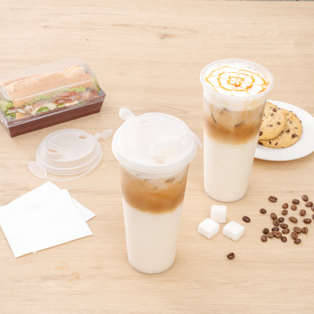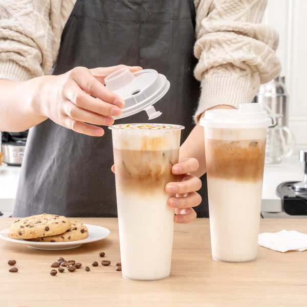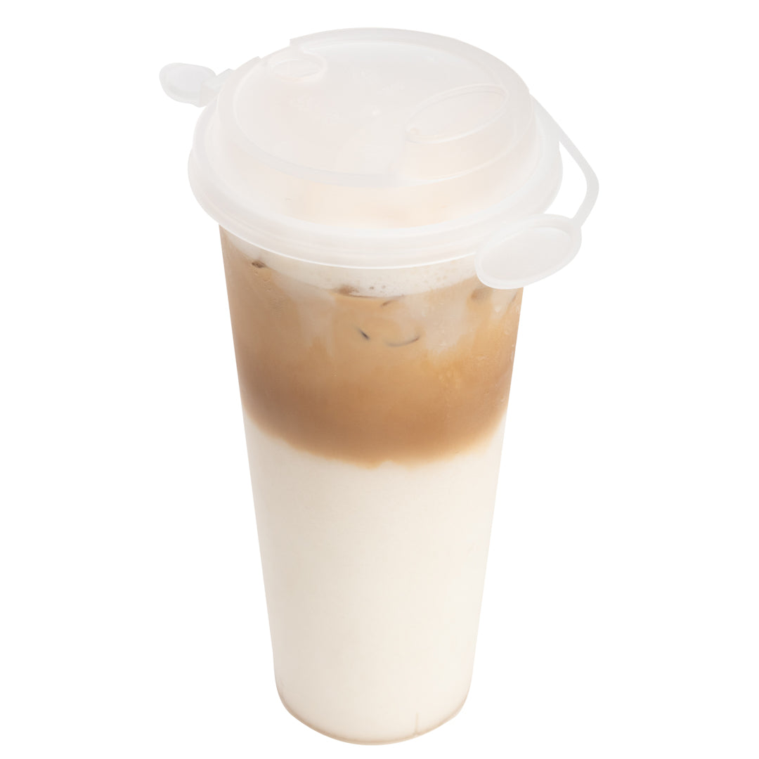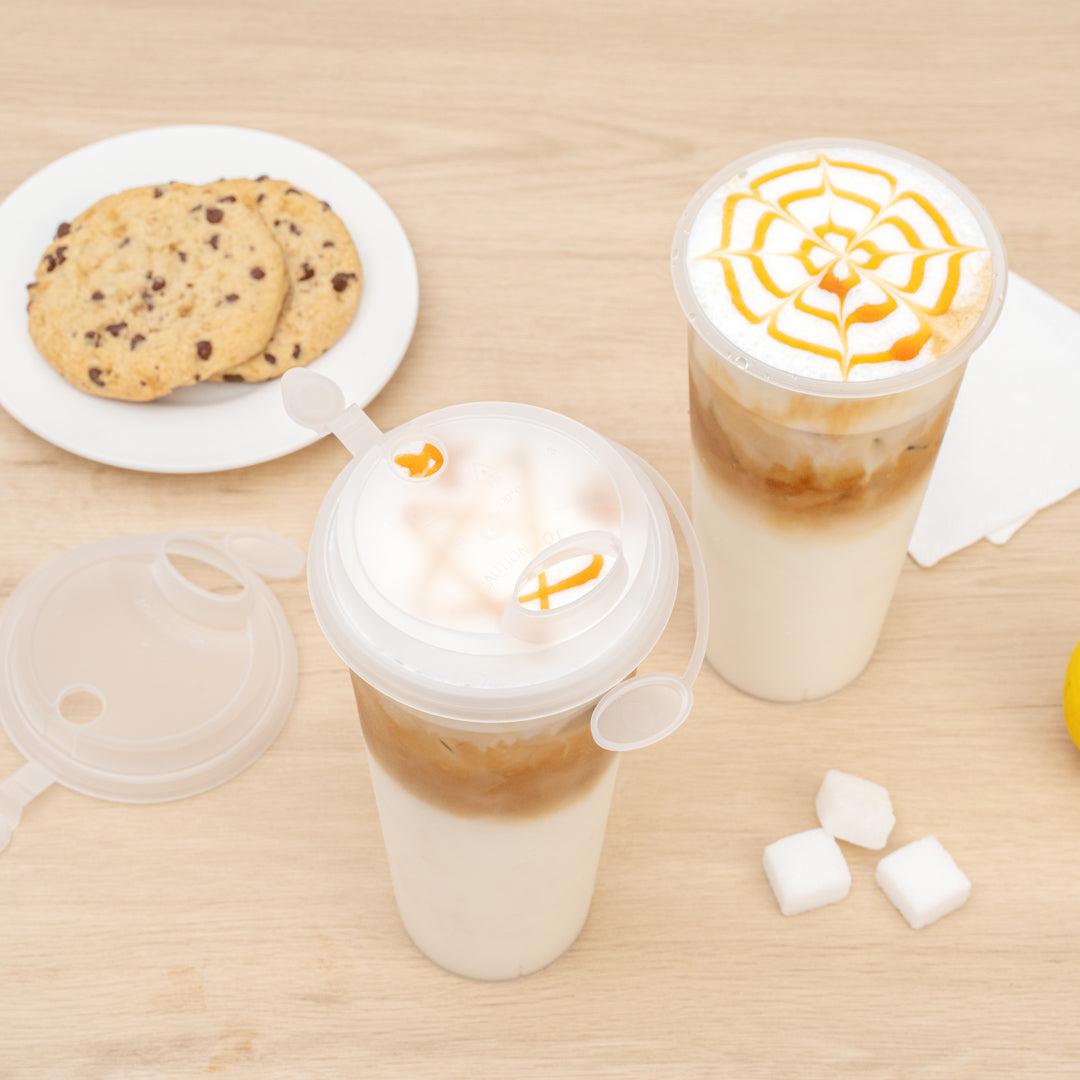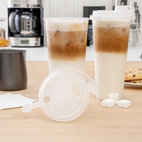 With a 2-in-1 design, these plastic cup lids feature a drinking spout opening alongside a straw slot so guests can enjoy their drinks however they prefer. Plus, they're equipped with stoppers to securely cover the opening not in use.