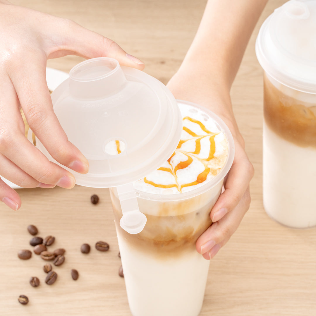 CLEAR PLASTIC 2-IN-1 CUP LID - WITH TWO PLUGS, FITS 12, 16, 24 OZ
