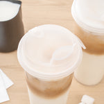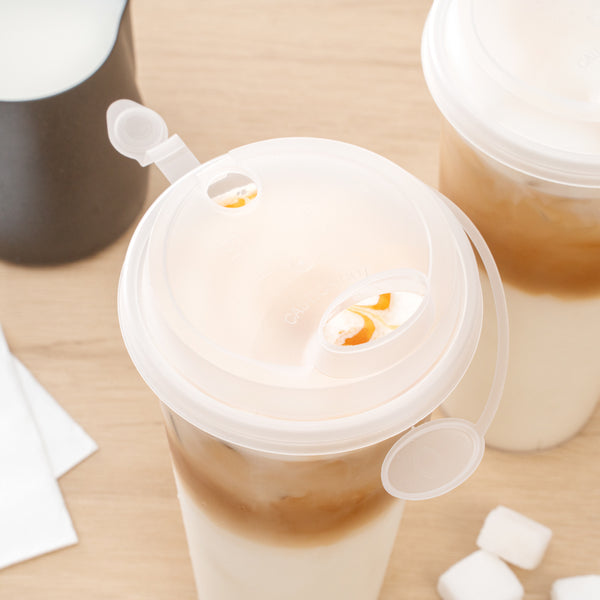 With a 2-in-1 design, these plastic cup lids feature a drinking spout opening alongside a straw slot so guests can enjoy their drinks however they prefer. Plus, they're equipped with stoppers to securely cover the opening not in use.
