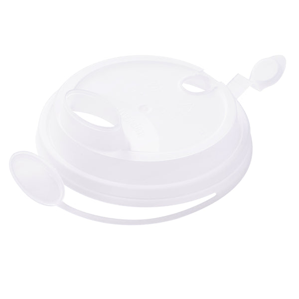 CLEAR PLASTIC 2-IN-1 CUP LID - WITH TWO PLUGS, FITS 12, 16, 24 OZ