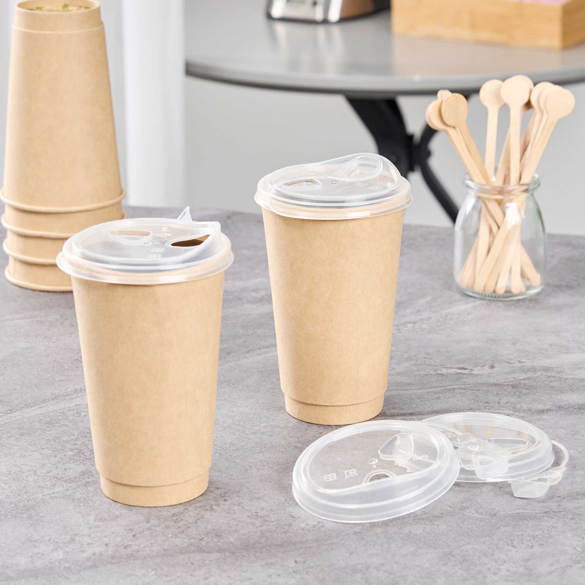 With a 2-in-1 design, these plastic cup lids feature a drinking spout opening alongside a straw slot so guests can enjoy their drinks however they prefer. Plus, they're equipped with stoppers to securely cover the opening not in use.