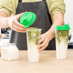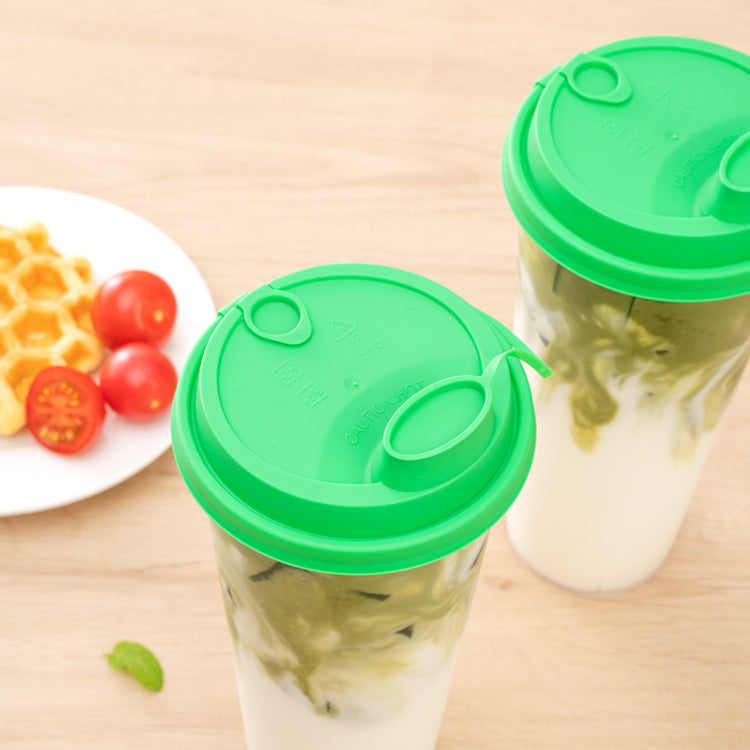 GREEN PLASTIC 2-IN-1 CUP LID - WITH TWO PLUGS, FITS 12, 16, 24 OZ