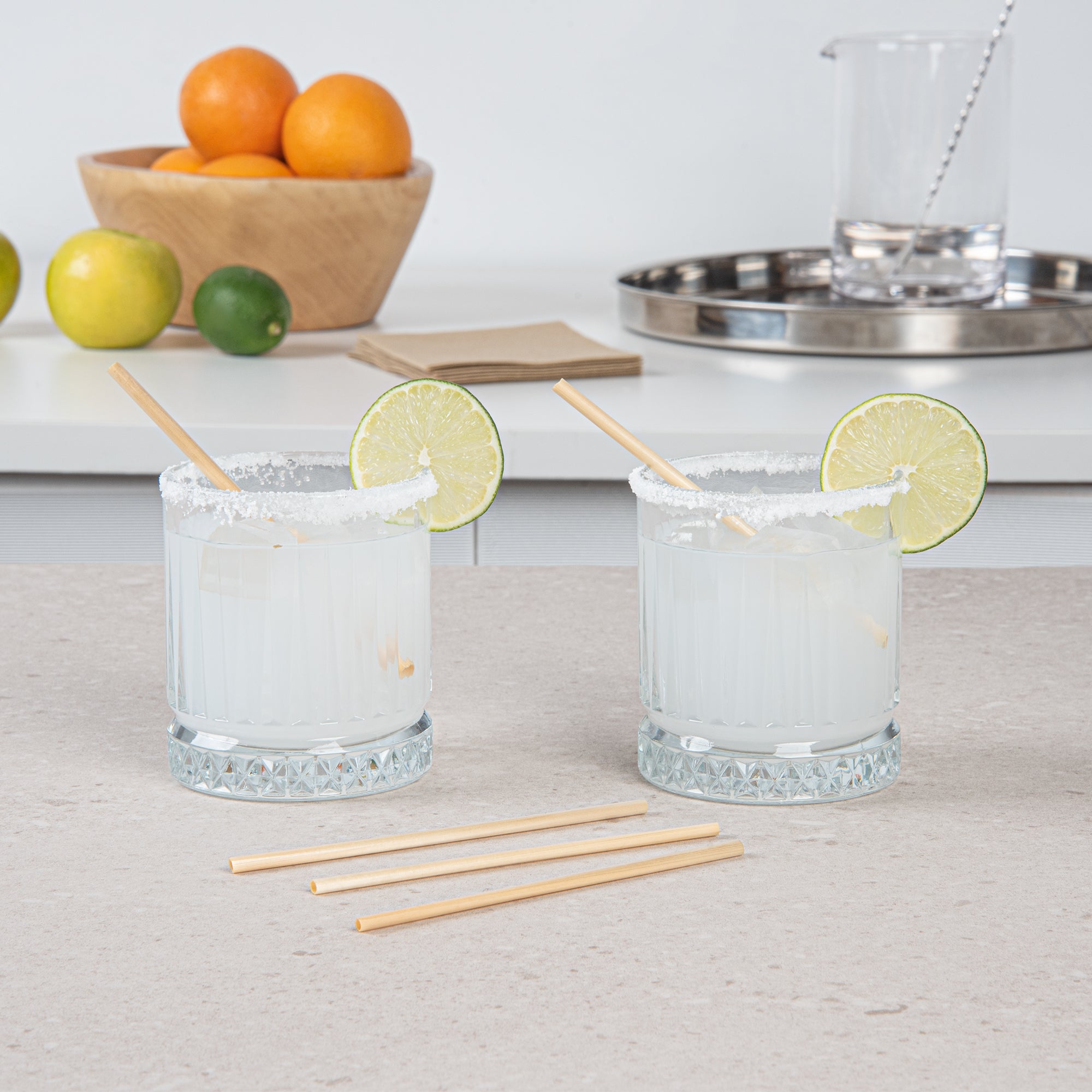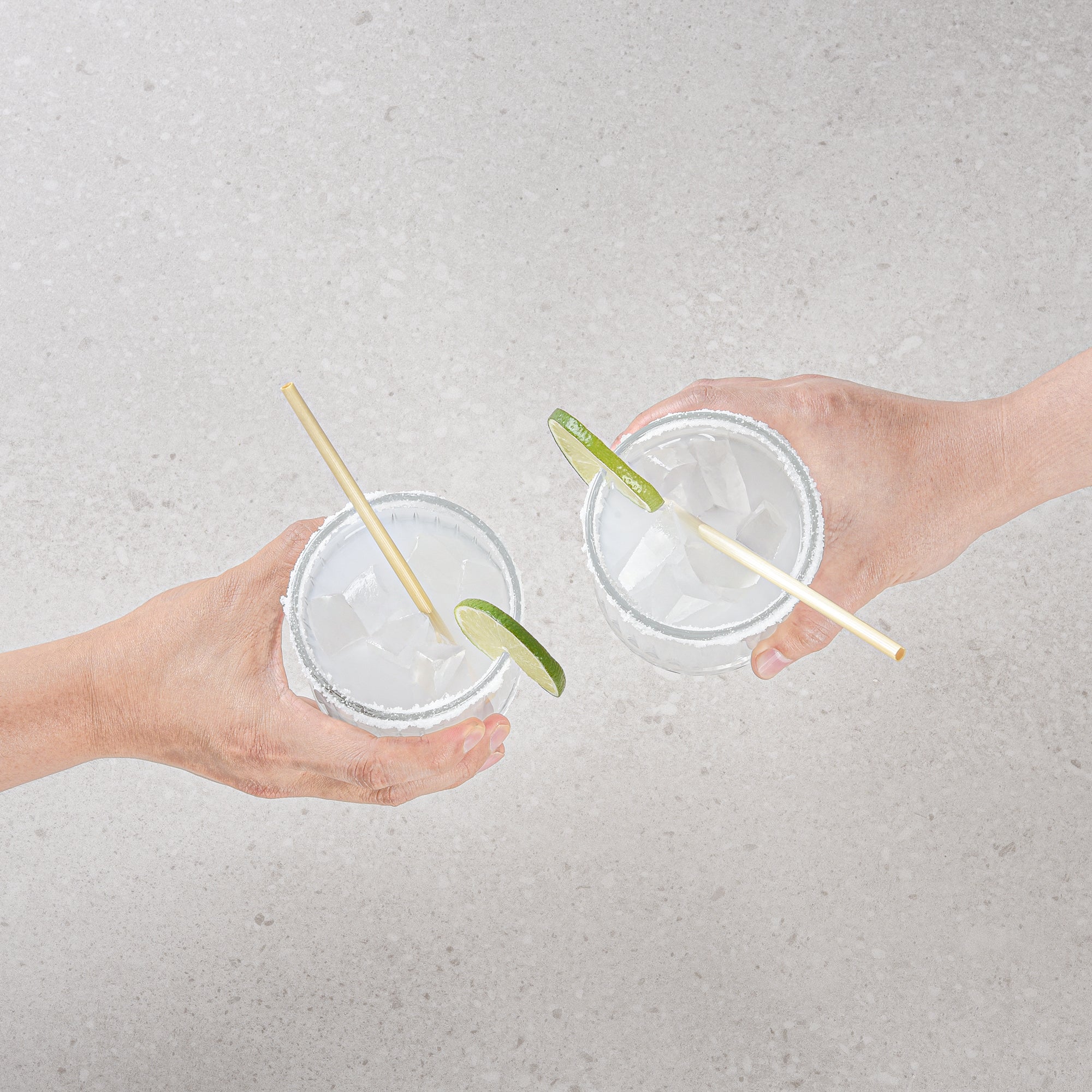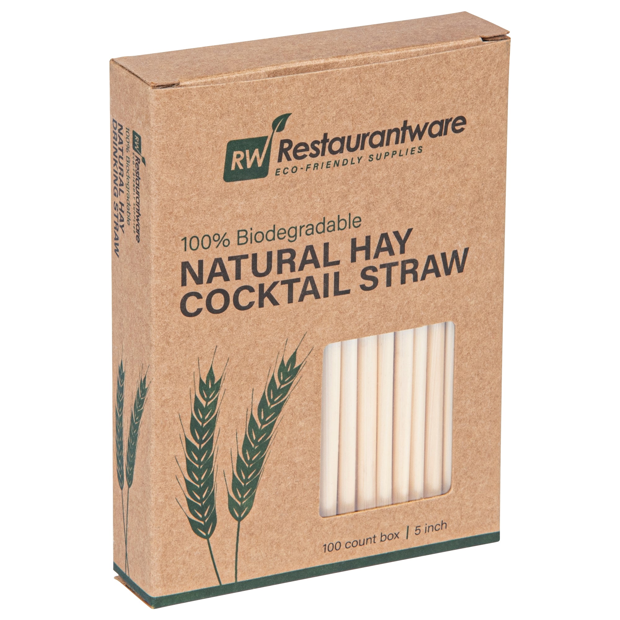 Serve your margaritas, mojitos, and mixed drinks with an eco-friendly twist: these Bev Tek Biodegradable Natural Hay Cocktail Straws! After farmers harvest their wheat crop, we collect the hay stems that remain and repurpose them into these biodegradable, natural drinking straws. Each of these all-natural wheat straws has been washed and cured in a special triple-sanitation process that ensures they are perfectly clean and ready for use in foodservice establishments. These biodegradable cocktail straws measure around 5.1 inches in length and are a perfect fit for most rocks glasses, lowball glasses, and other standard-sized cocktail glasses. Due to natural variations in the wheat plant, each biodegradable cocktail straw is unique in size, shape, and color. Sold in a 100 count box. This item will only degrade outside of the traditional solid waste stream.