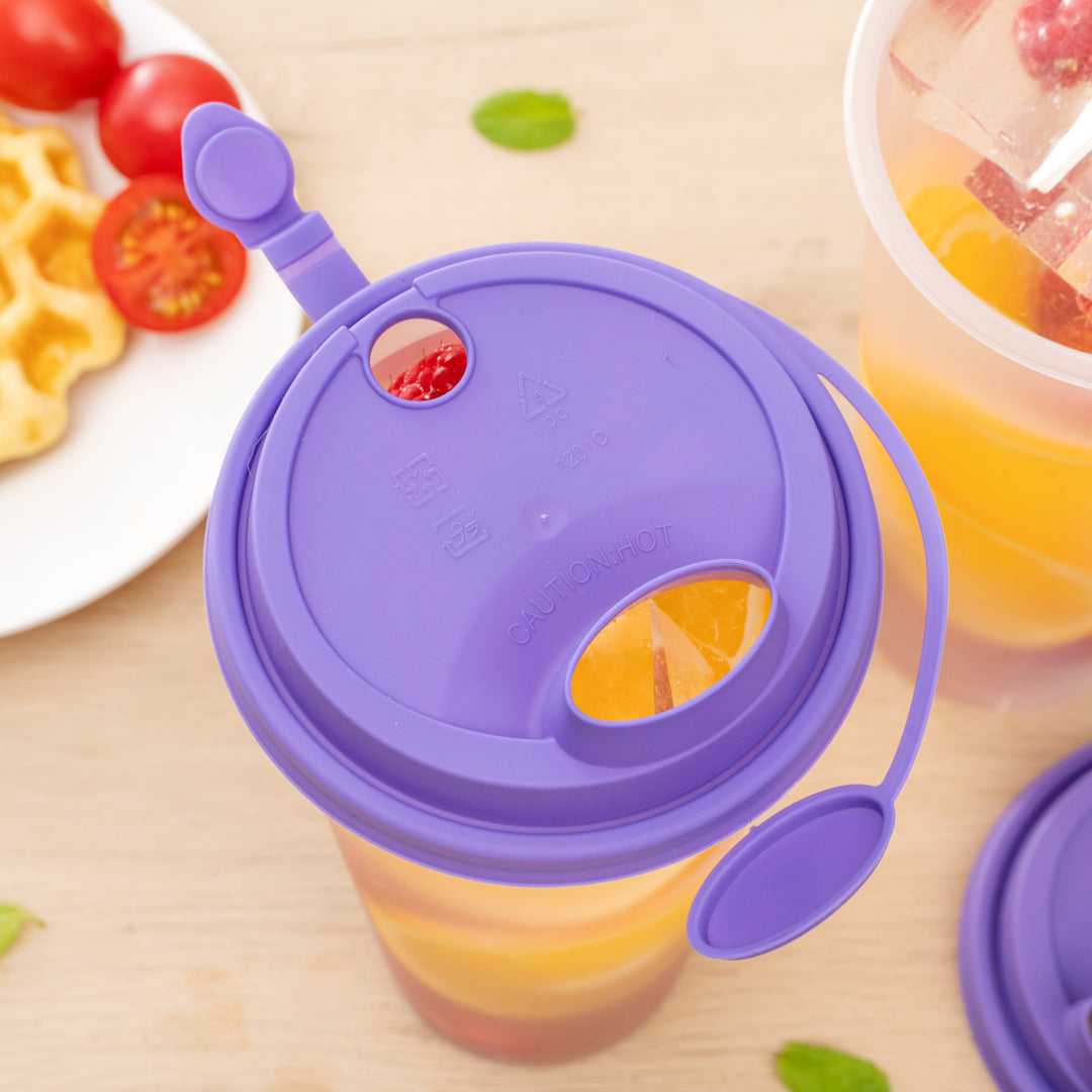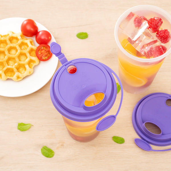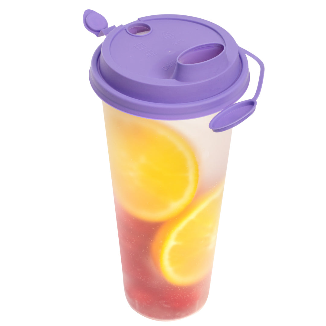 PURPLE PLASTIC 2-IN-1 CUP LID - WITH TWO PLUGS, FITS 12, 16, 24 OZ