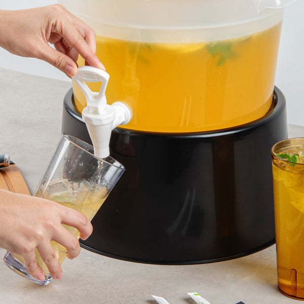 The raised base design of these plastic dispenser bases ensures easy access for both pouring and refilling. Elevating your beverage experience.