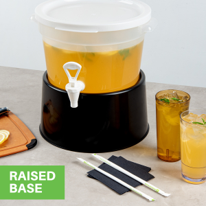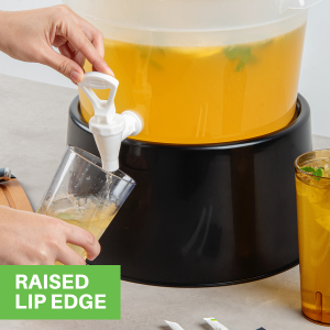 The raised lip edge of these dishwashable beverage dispenser bases captures any drips or spills, ensuring a clean and dry surface at all times. Extra security for streamlined beverage service.
