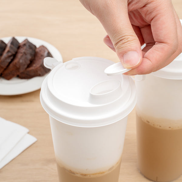 WHITE PLASTIC 2-IN-1 CUP LID - WITH TWO PLUGS, FITS 12, 16, 24 OZ