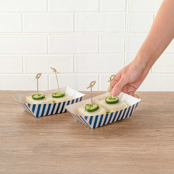 1/2 LB BLUE AND WHITE STRIPE PAPER #50 FOOD TRAY / BOAT