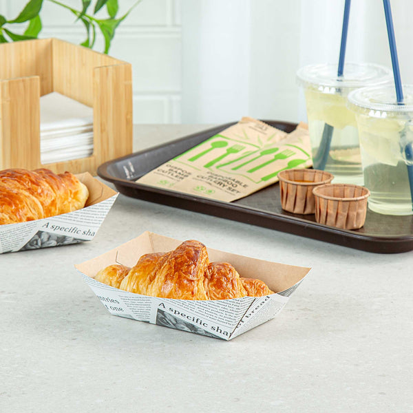 For a simple cleaning process for establishments and guests, these paper food boats are sustainably disposable. Reduce your impact on the environment!