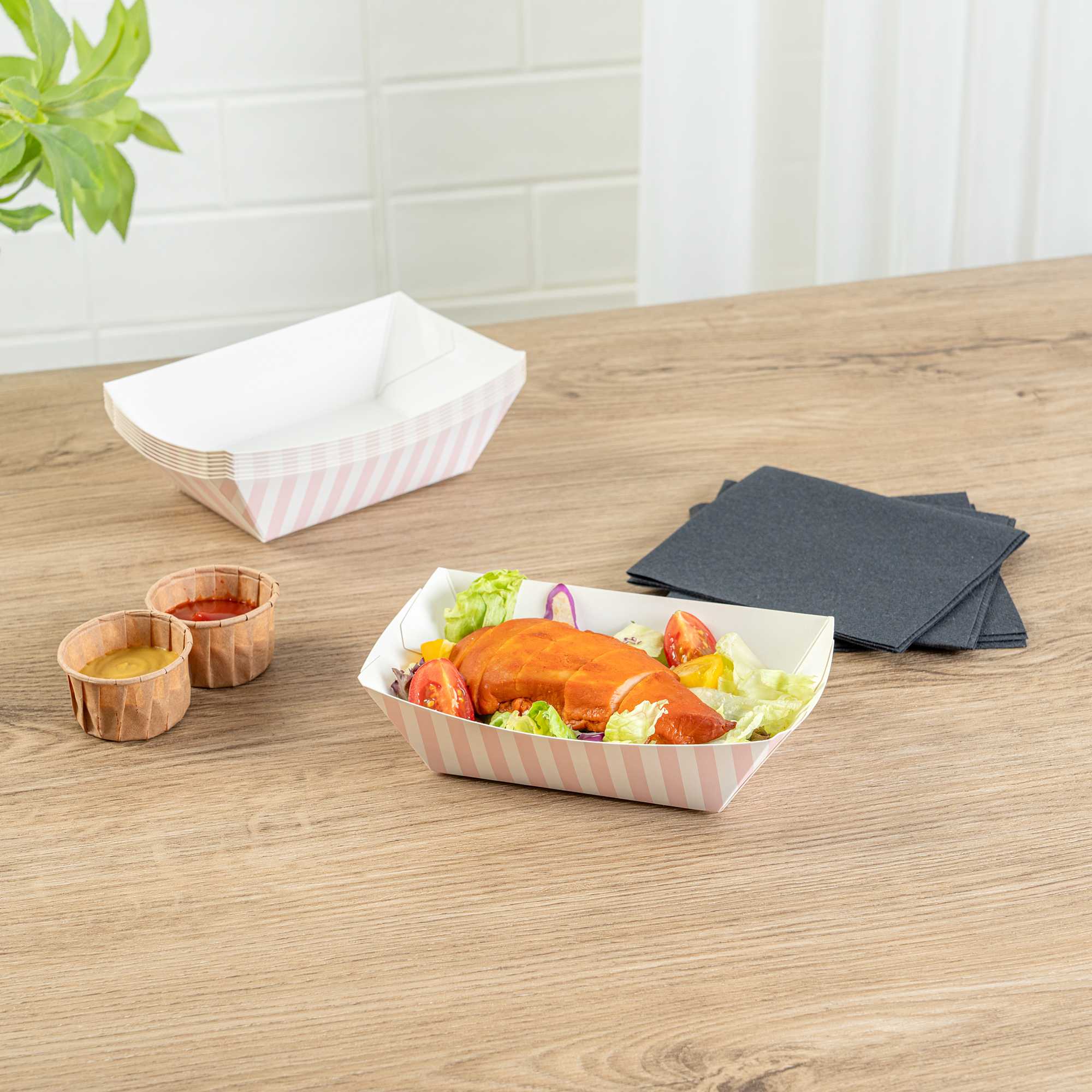 1/2 LB PINK AND WHITE STRIPE PAPER #50 FOOD TRAY / BOAT