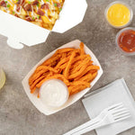 For a simple cleaning process for establishments and guests, these paper food boats are sustainably disposable. Reduce your impact on the environment!