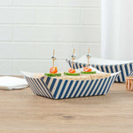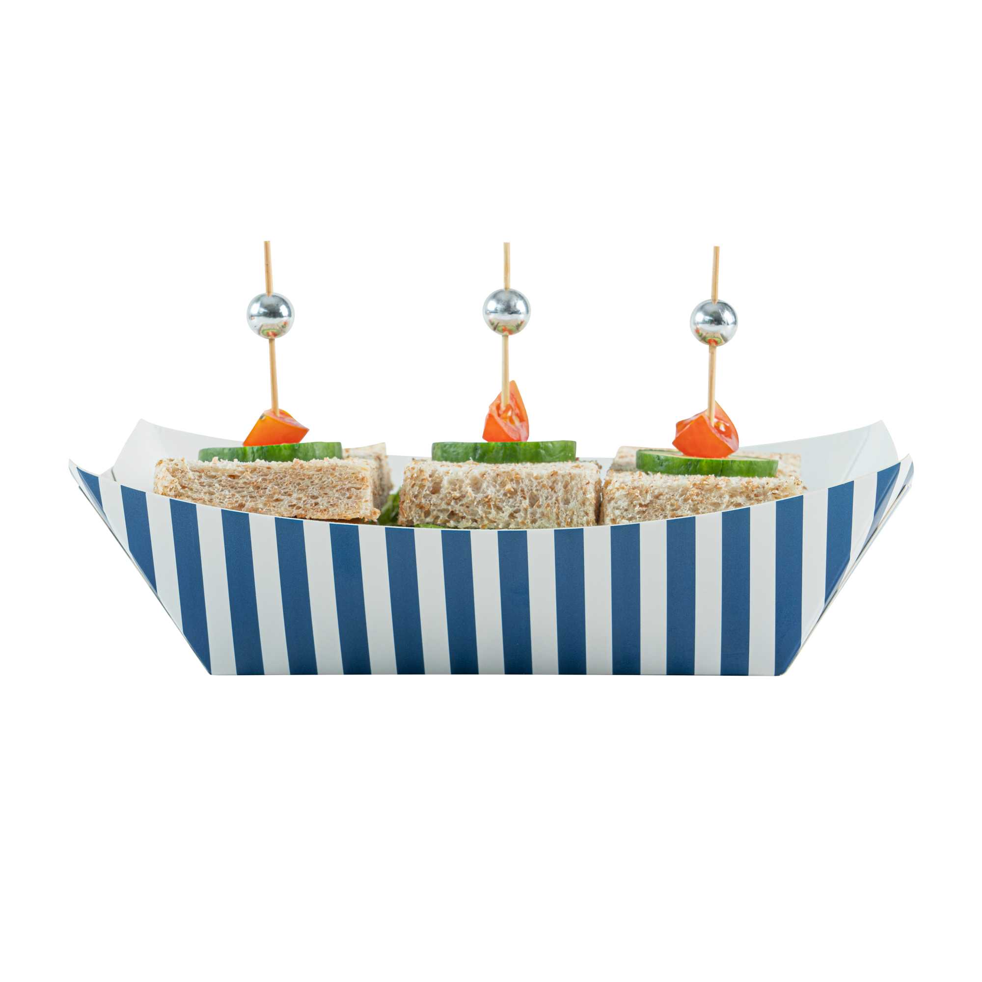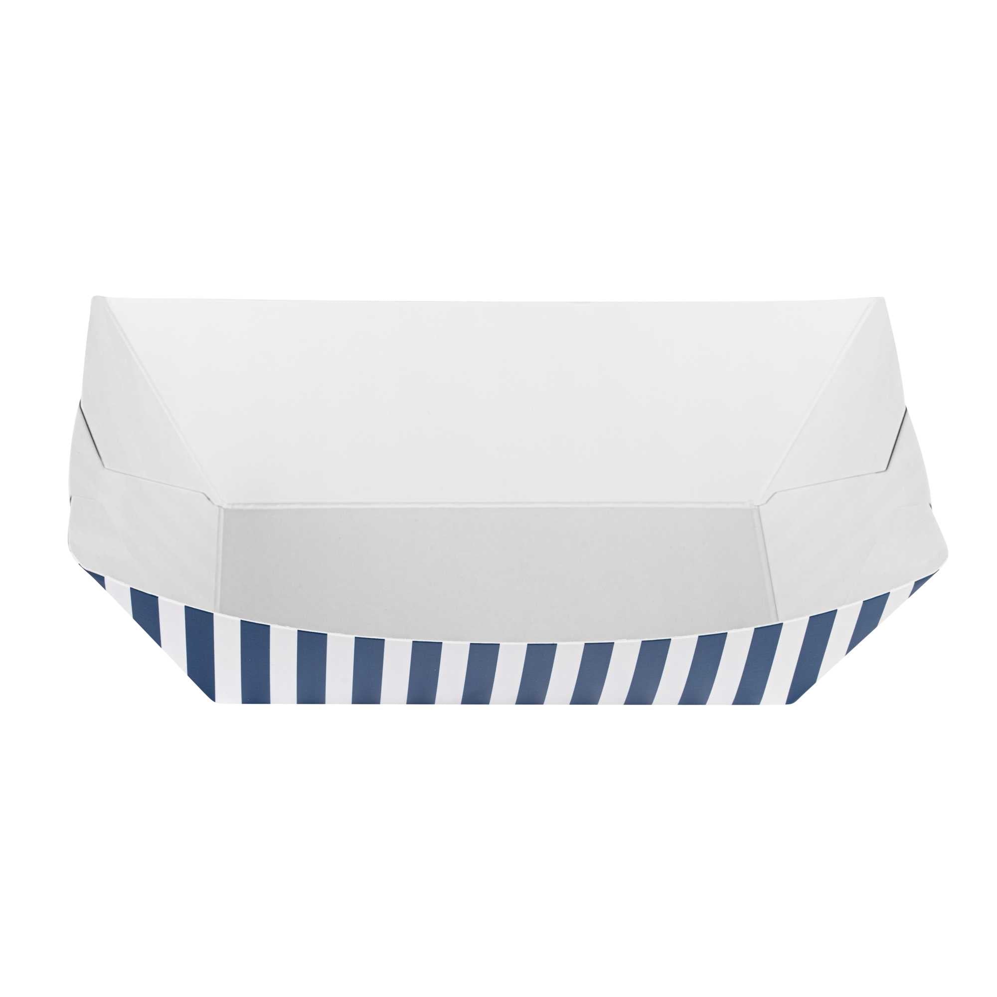 1 LB BLUE AND WHITE STRIPE PAPER #100 FOOD TRAY / BOAT