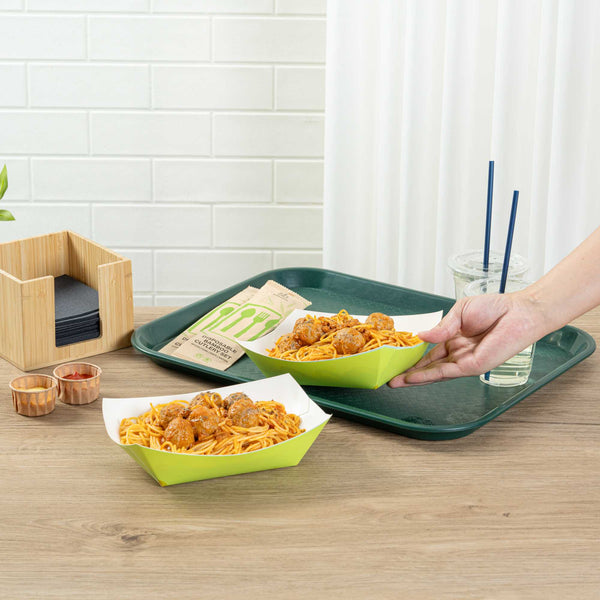 With numerous options to choose from, these paper food trays come in multiple colors to complement all kinds of food service establishments. Pick the paper boat that best fits your aesthetic!