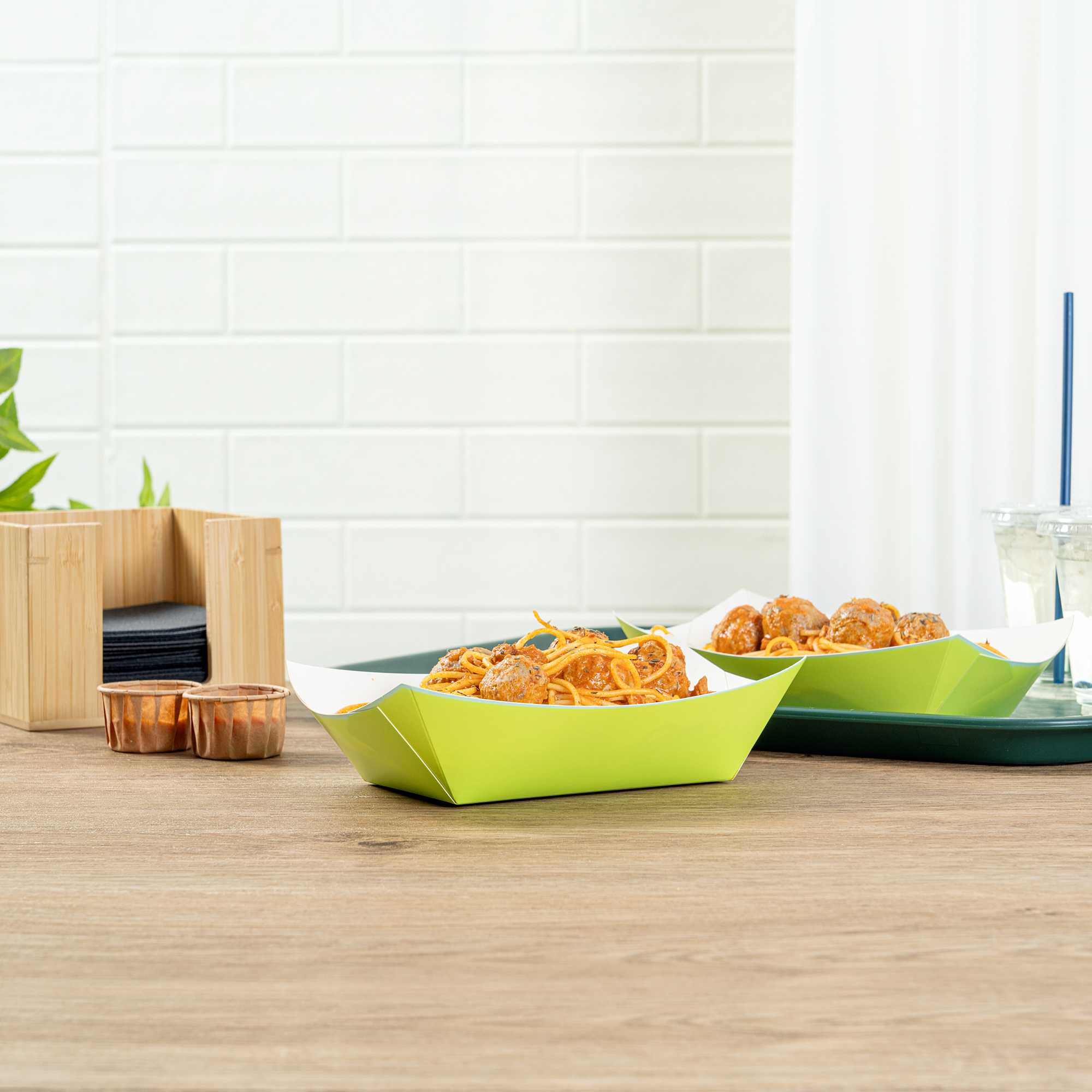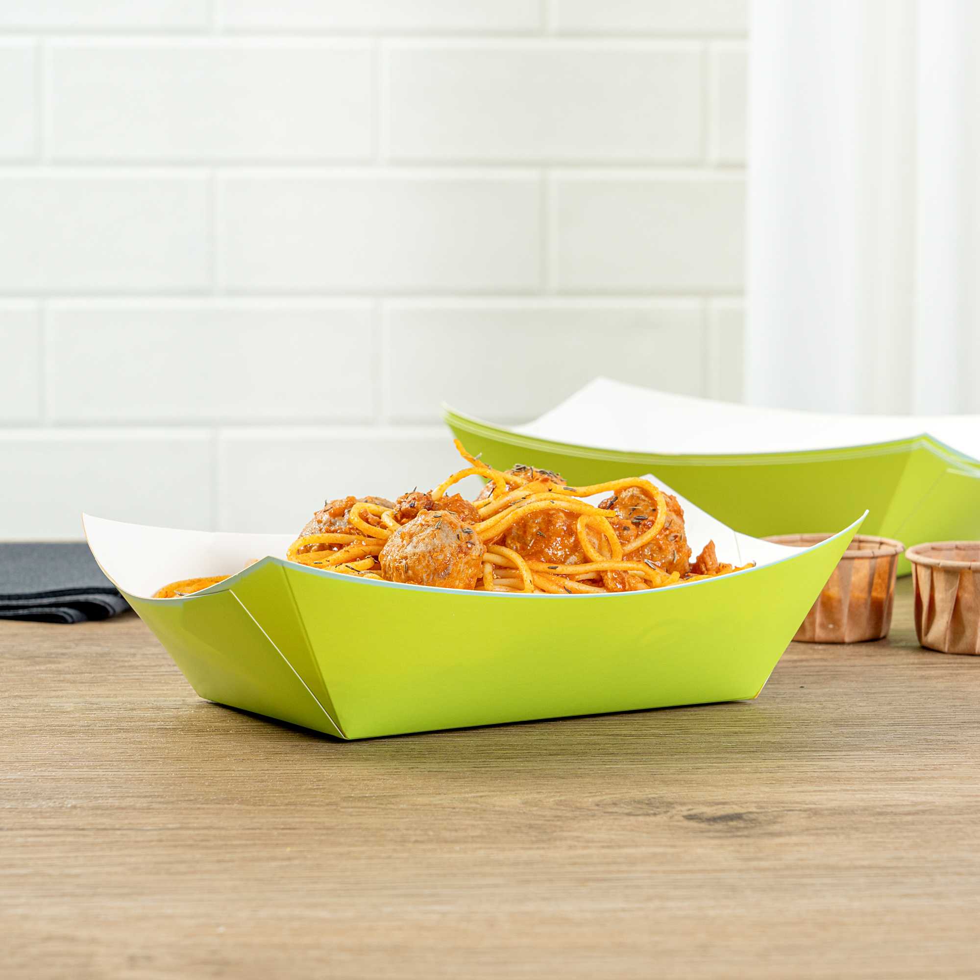 With numerous options to choose from, these paper food trays come in multiple colors to complement all kinds of food service establishments. Pick the paper boat that best fits your aesthetic!