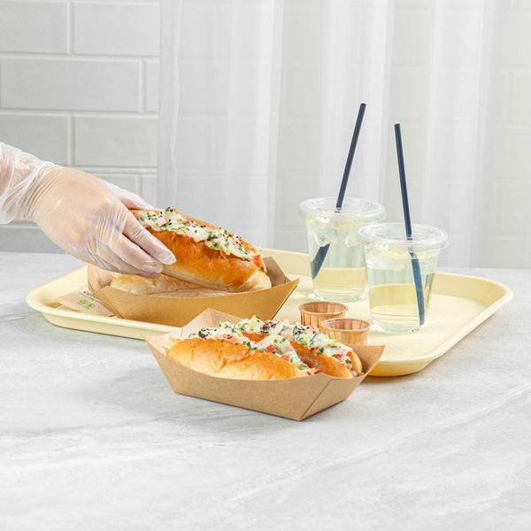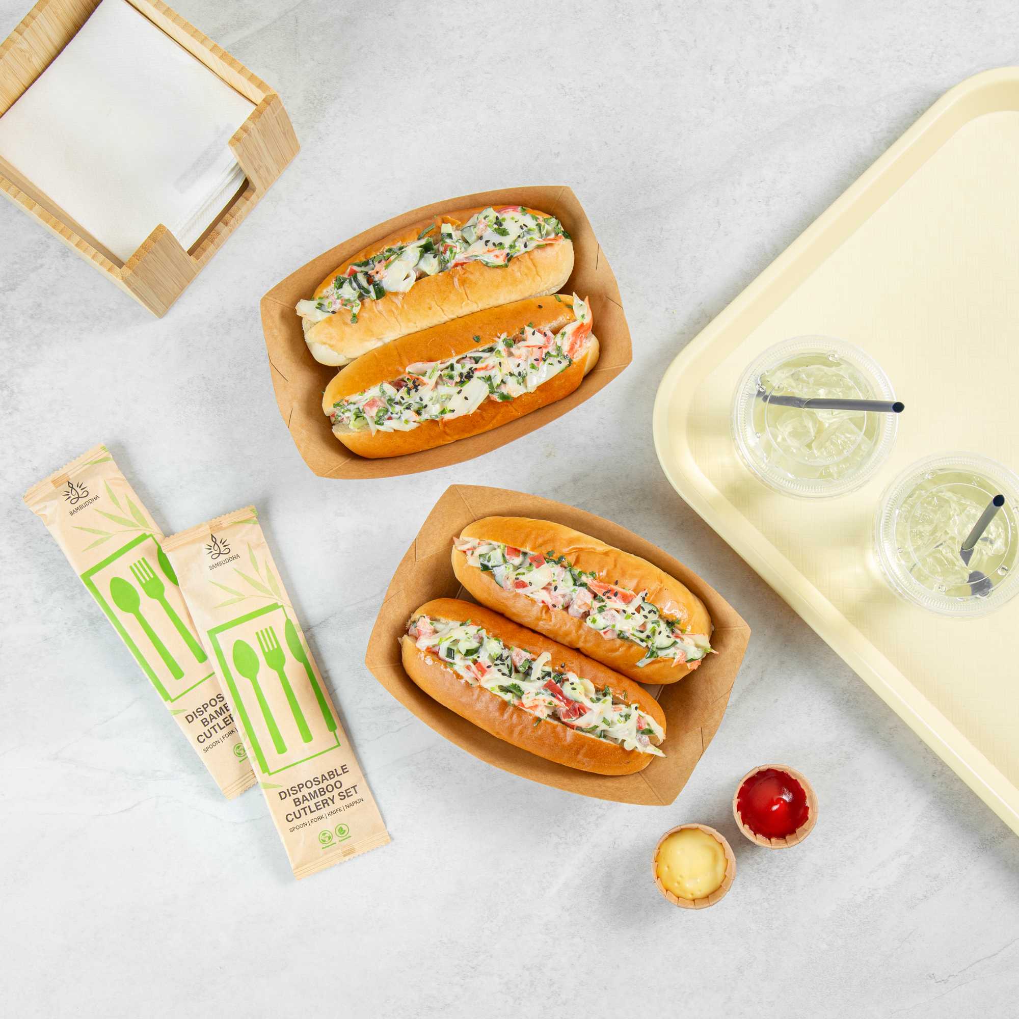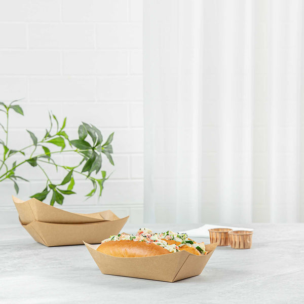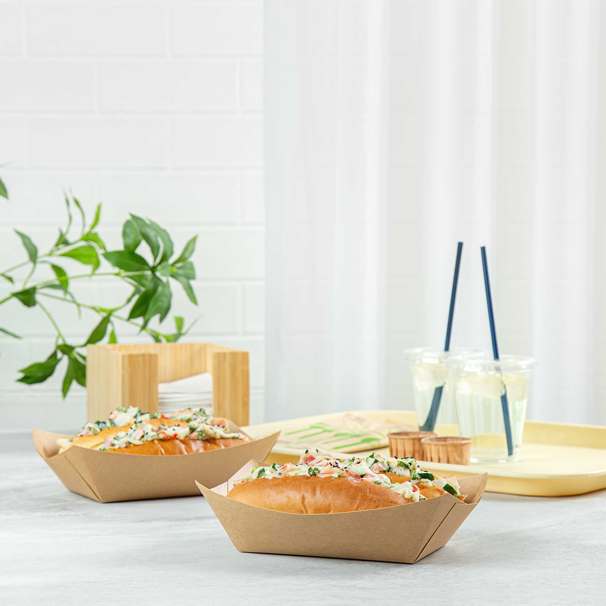For a simple cleaning process for establishments and guests, these paper food boats are sustainably disposable. Reduce your impact on the environment!