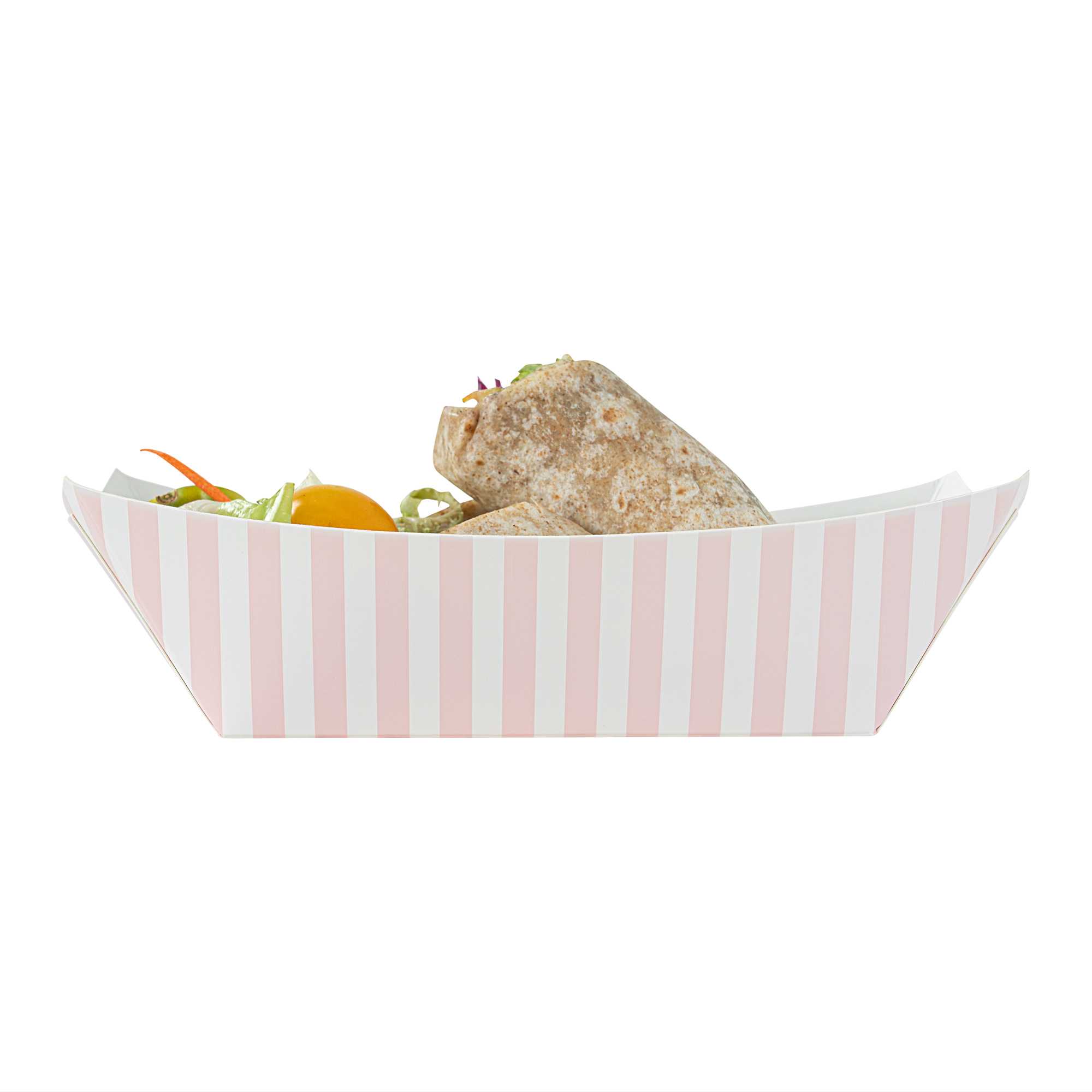 1 LB PINK AND WHITE STRIPE PAPER #100 FOOD TRAY / BOAT