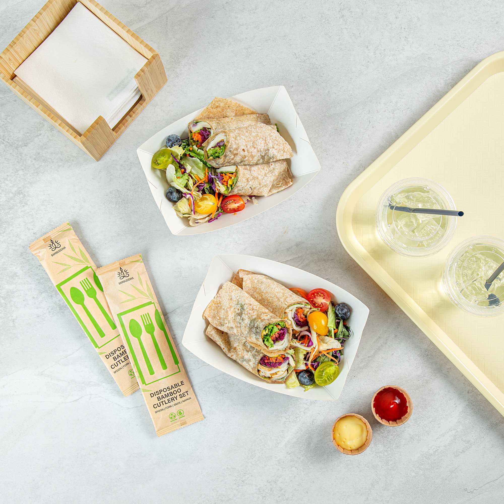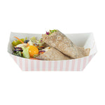 Elevate your dining experience with our Bio Tek 1-pound Pink and White Stripe Paper #100 Food Tray / Boats. Crafted from sustainable paper, these 1-pound striped trays add an air of sophistication to your culinary displays. Designed to accommodate hearty portions, these sturdy trays are perfect for satisfying appetites. Enhanced with a greaseproof lining, they are tailor-made for dishes that are rich in oil or moisture. Whether you're serving burgers, lobster rolls, Caesar salads, or chicken wings, these paper food trays provide a streamlined solution for takeaway dining. Each tray measures 4.2 inches long by 2.7 inches wide at the base and 7 inches long by 4 inches wide at the top. Sold in a 50 count box.