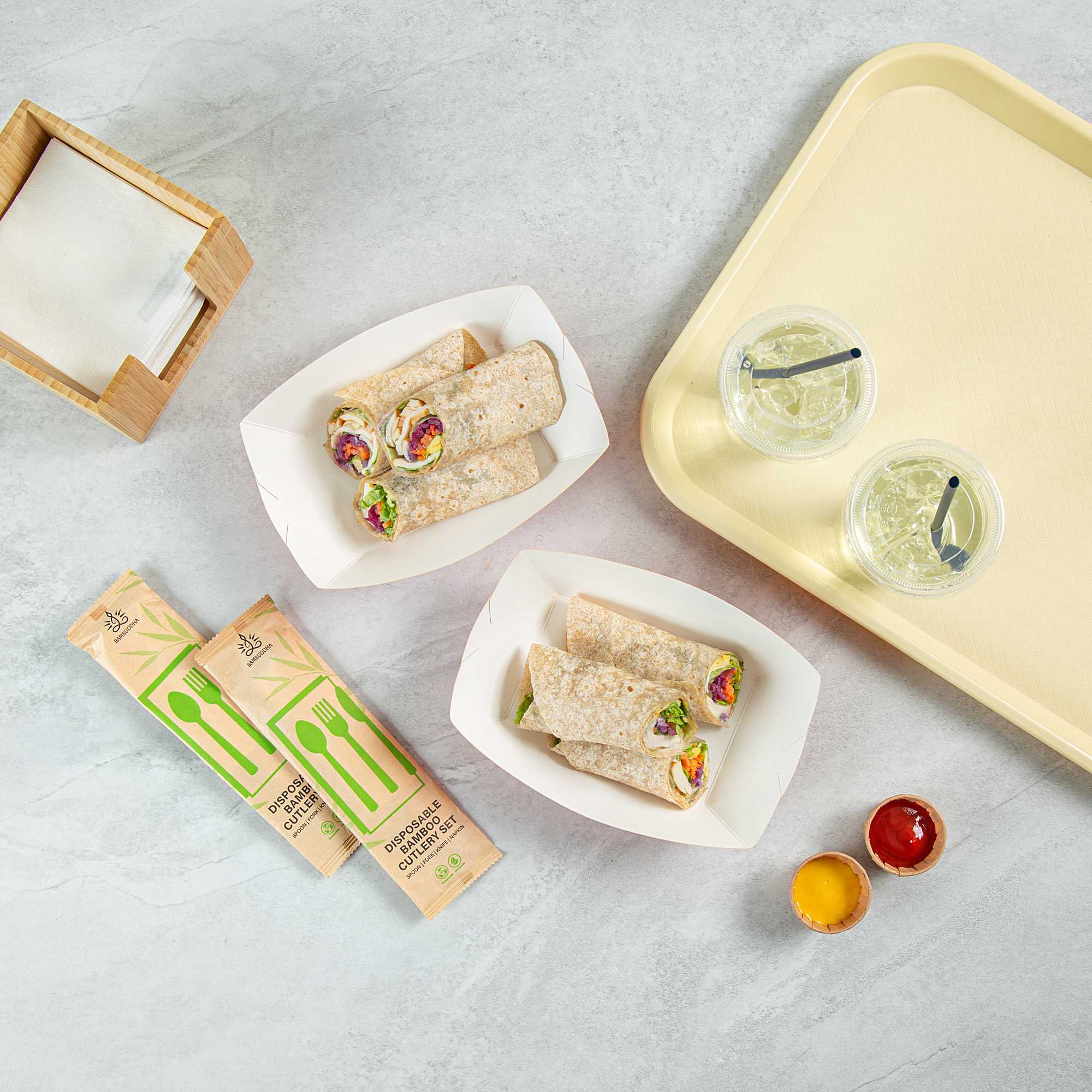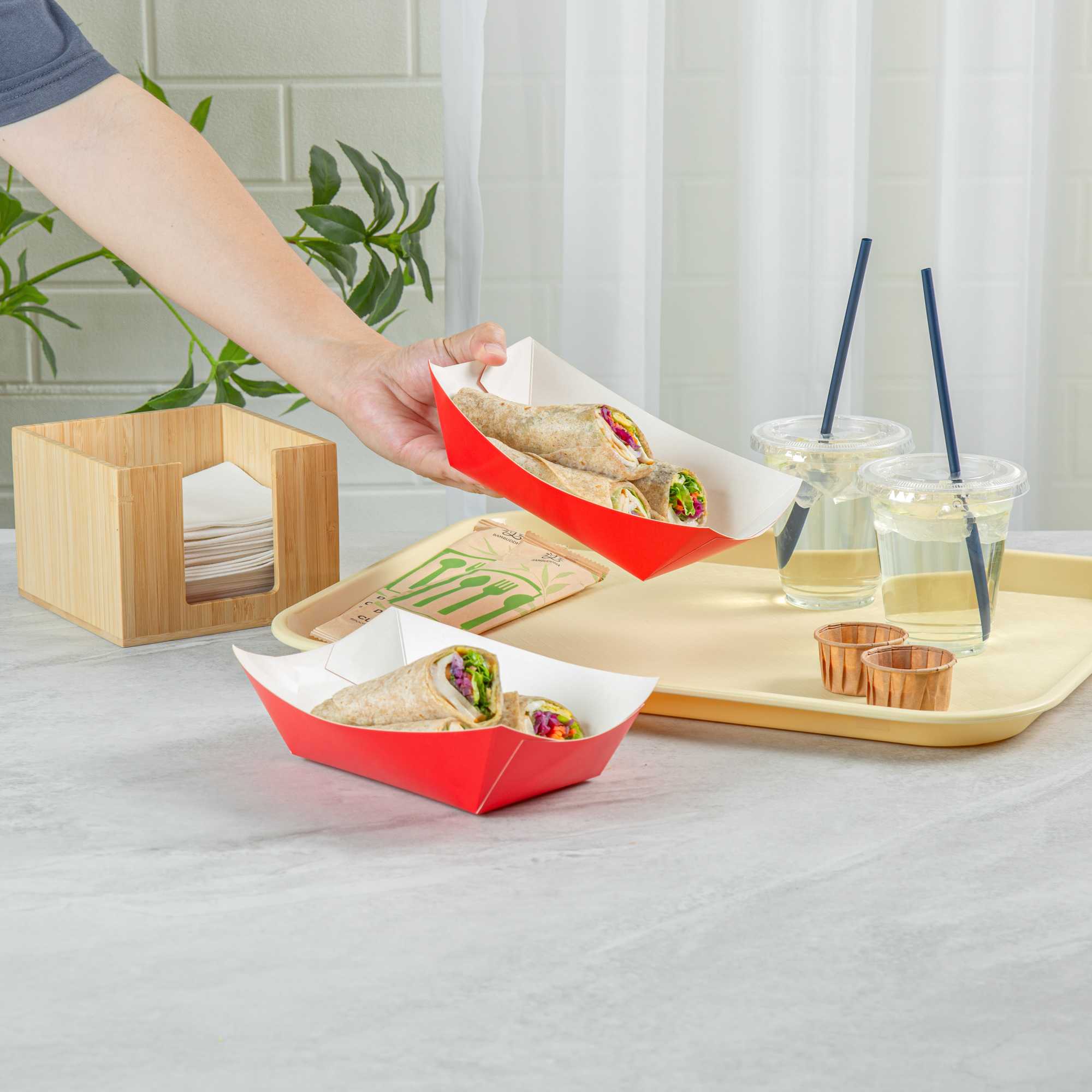 For a simple cleaning process for establishments and guests, these paper food boats are sustainably disposable. Reduce your impact on the environment!