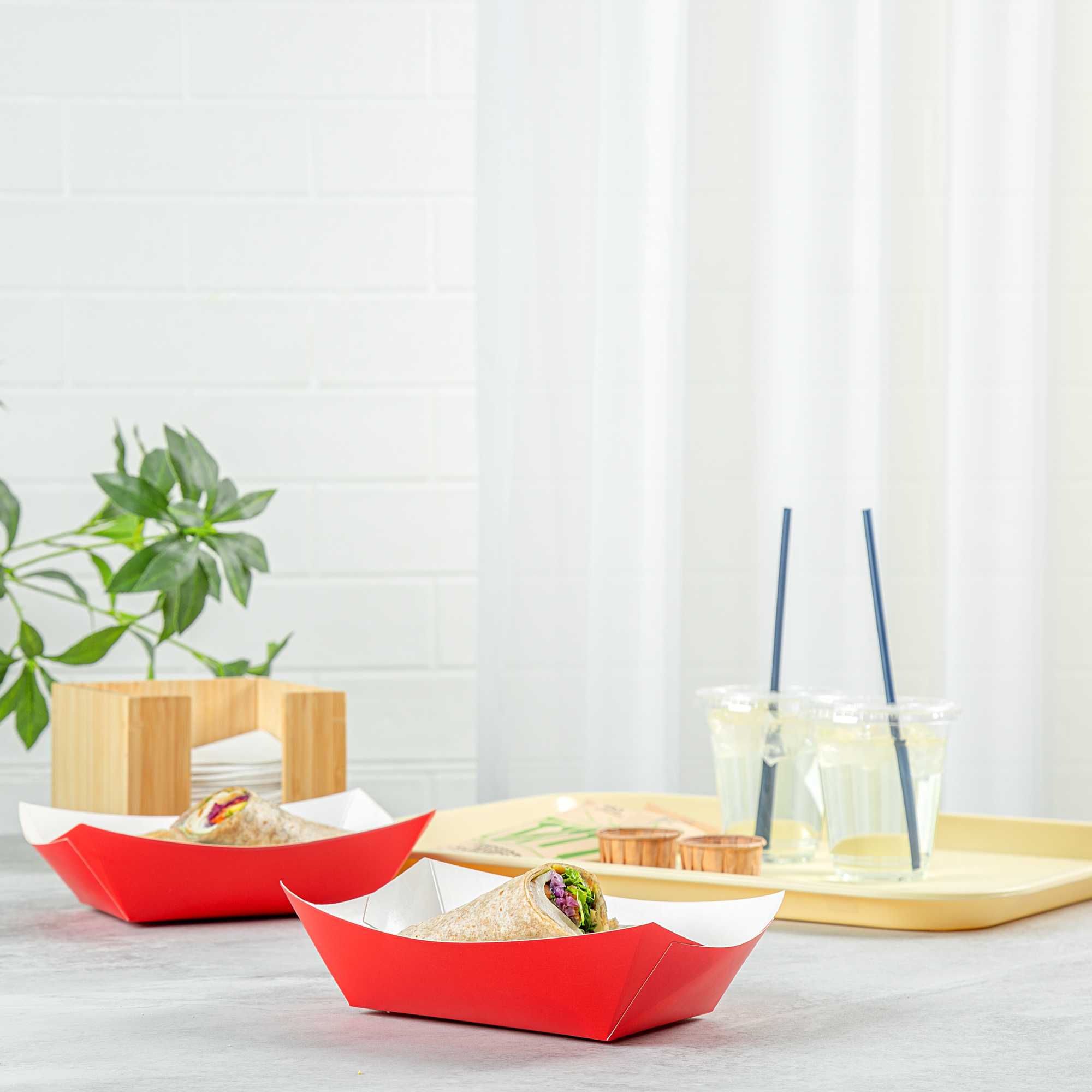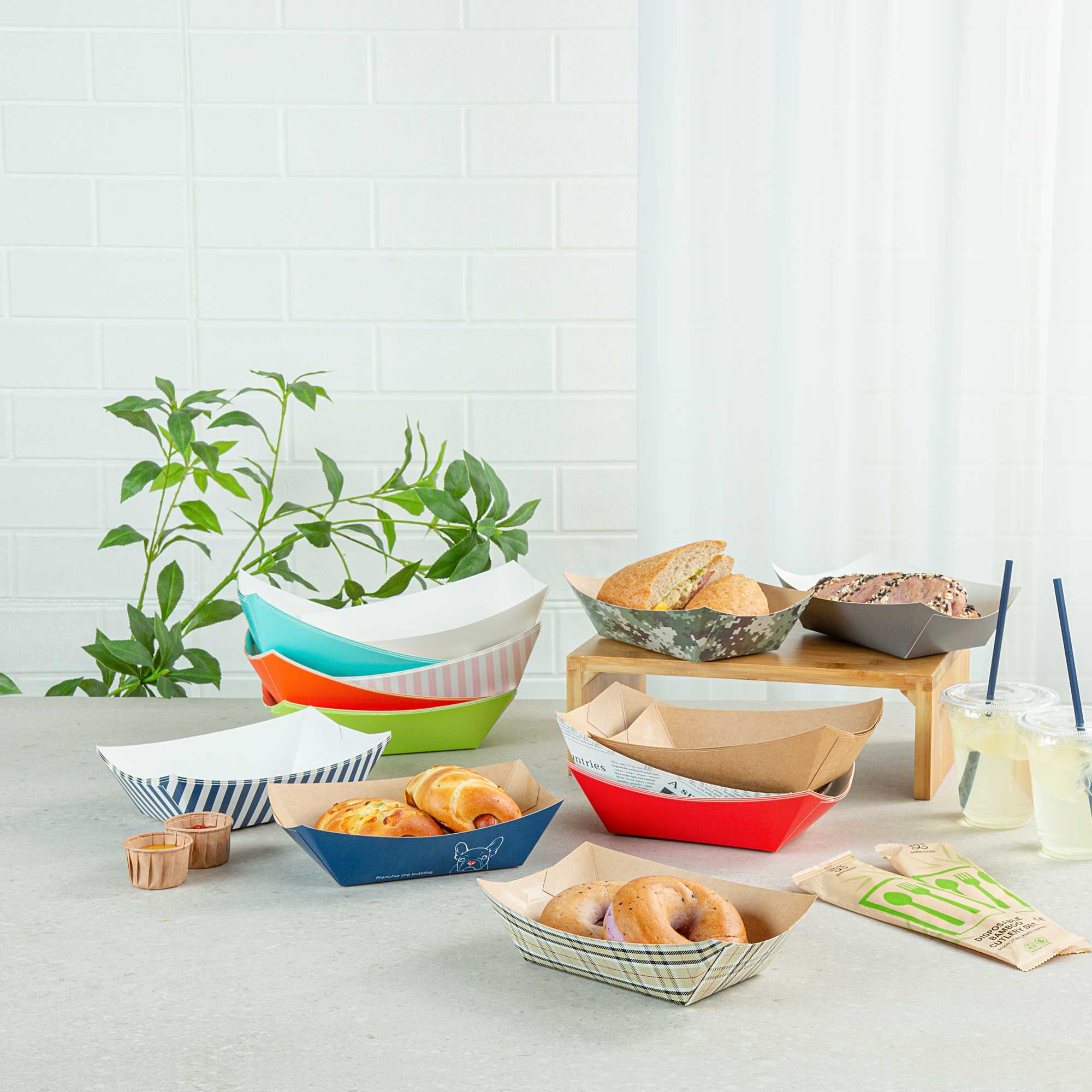With numerous options to choose from, these paper food trays come in multiple colors to complement all kinds of food service establishments. Pick the paper boat that best fits your aesthetic!