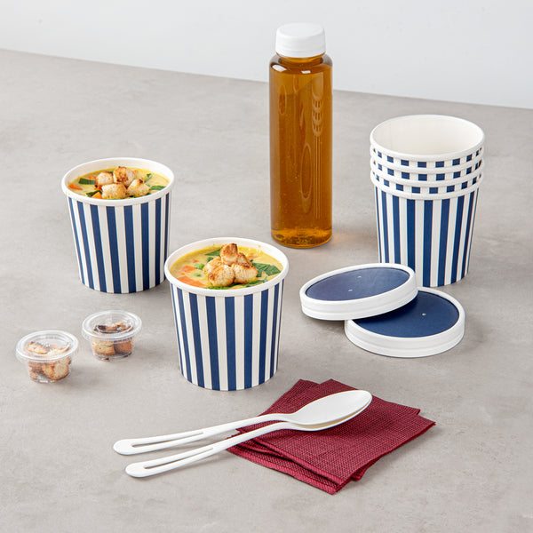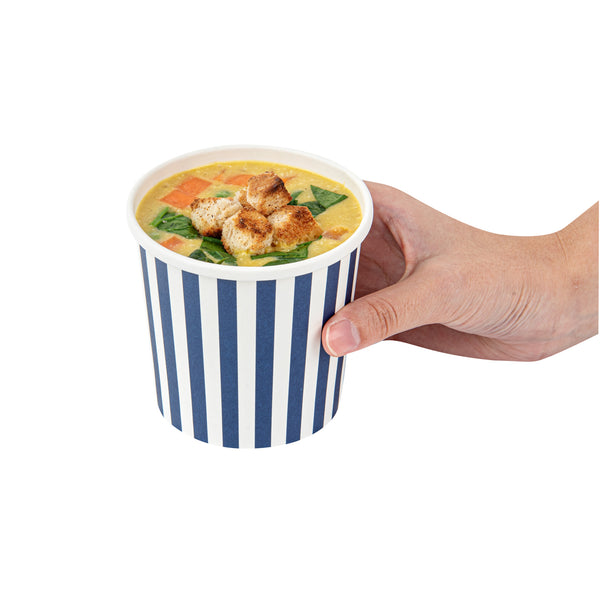 12 OZ ROUND BLUE AND WHITE STRIPE PAPER SOUP CONTAINER