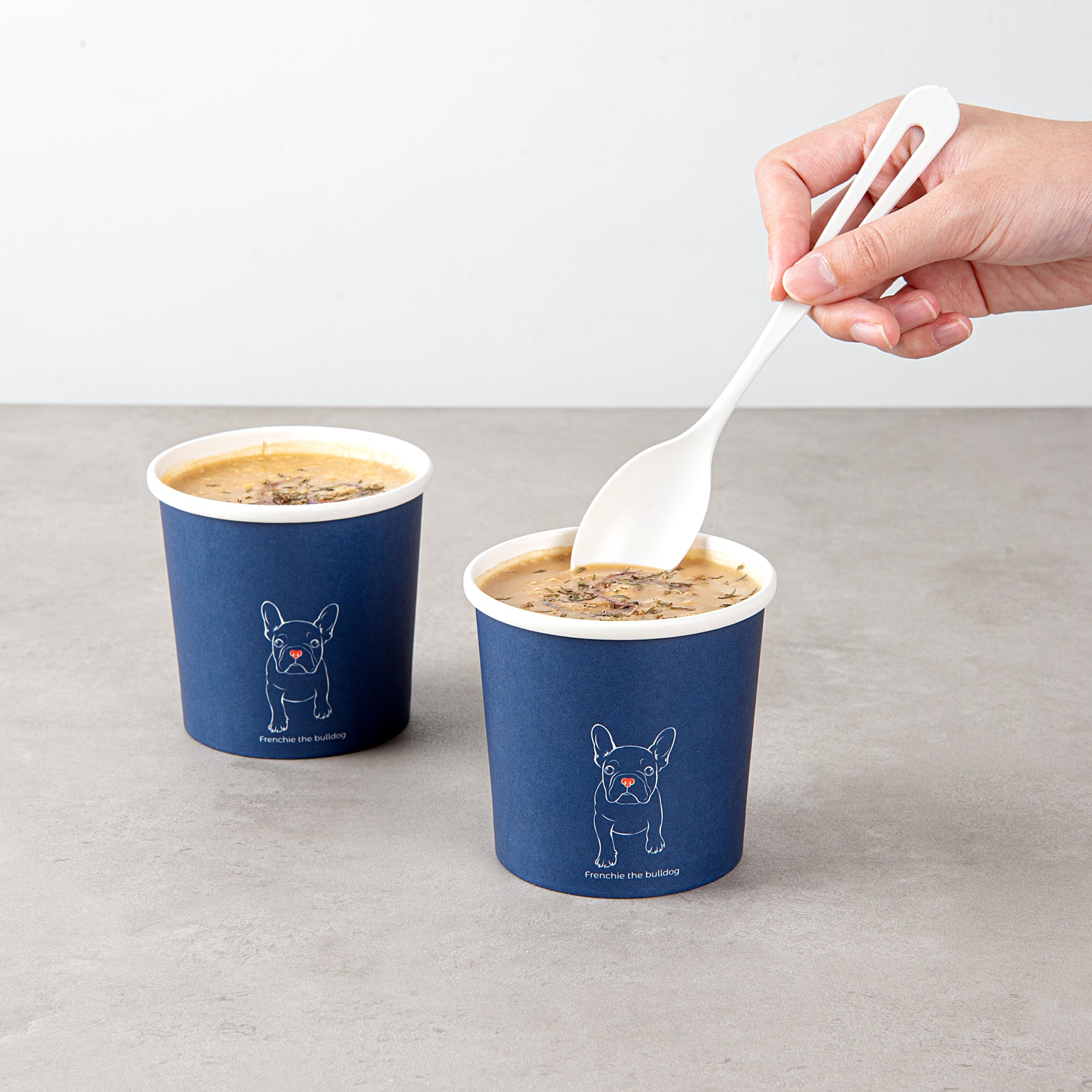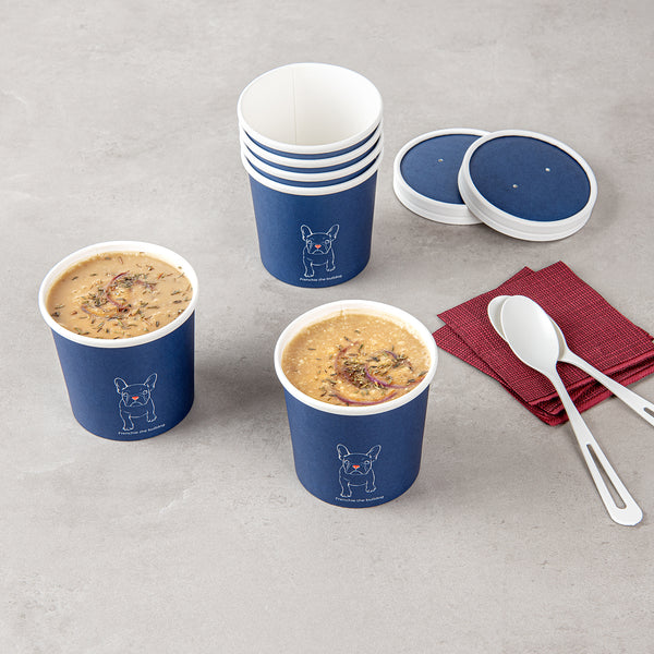 Crafted from sturdy paper that withstands both hot and cold foods, these paper soup containers are versatile. They retain their shape and are freezable.