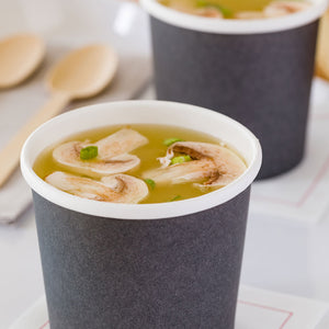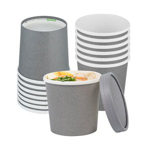 Keep your delivery orders hot and ready with our Bio Tek 12-ounce Round Gray Paper Soup Containers. These durable paper take out containers are ideal for hot or cold foods, allowing you to serve soups, stews, and noodles at any temperature. The tightly sealed rim and PP lining of these restaurant soup containers create a spill-proof seal, preventing leaks during transport or delivery. With a heat-resistant design, these microwavable restaurant take out containers allow you to fill directly from the stove or oven, then seal for delivery. Measuring 3.5 inches in diameter by 3.5 inches tall, these compact gray soup boxes fit easily into delivery bags and minimize space in your kitchen. Sold in a 200 count box. Lids are available and sold separately.