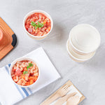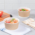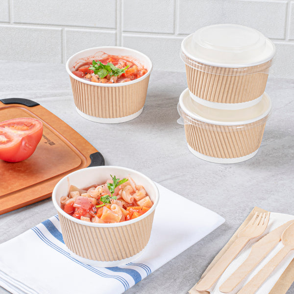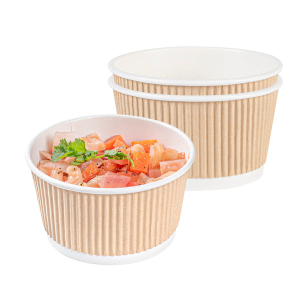 Maintain food integrity with our Bio Tek Kraft Soup Bowl. This paper soup bowl features a ripple wall design and tightly rolled rims that ensure durability and spillproof transport, even with hot liquids. The kraft paper bowl includes a PE lining, creating a leak-resistant barrier perfect for serving both hot and cold dishes like soups and broths. Its freezer-friendly construction allows for safe storage without sacrificing quality, making it an ideal hot soup container for busy restaurants and food trucks. The stackable design optimizes storage space, enhancing efficiency in bustling kitchens. Plus, being both disposable and recyclable, it provides an eco-conscious option for businesses looking to reduce their settingal impact. Elevate your foodservice operations with this versatile kraft paper bowl. Each order includes 200 Bio Tek Kraft Soup Bowl.