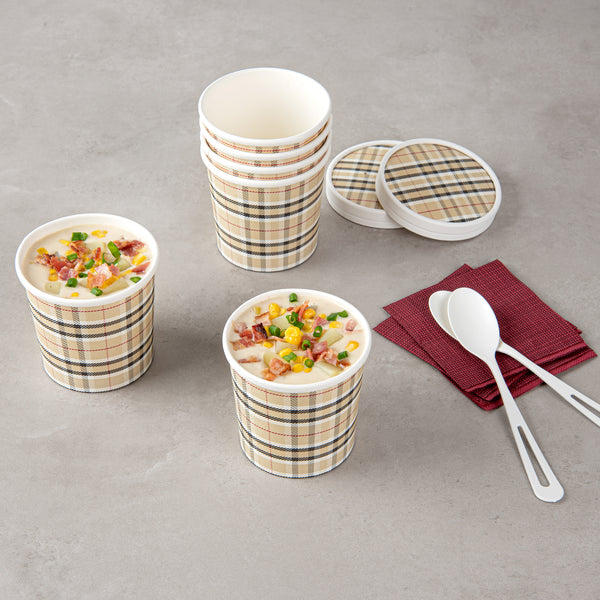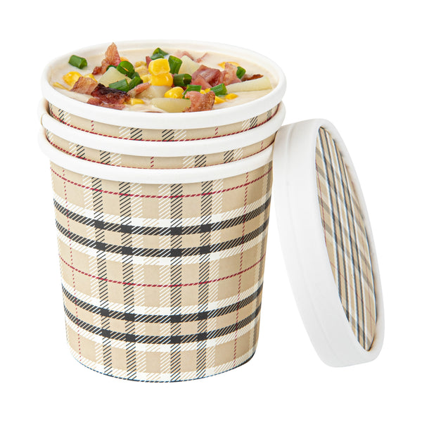 12 OZ ROUND PLAID PAPER SOUP CONTAINER