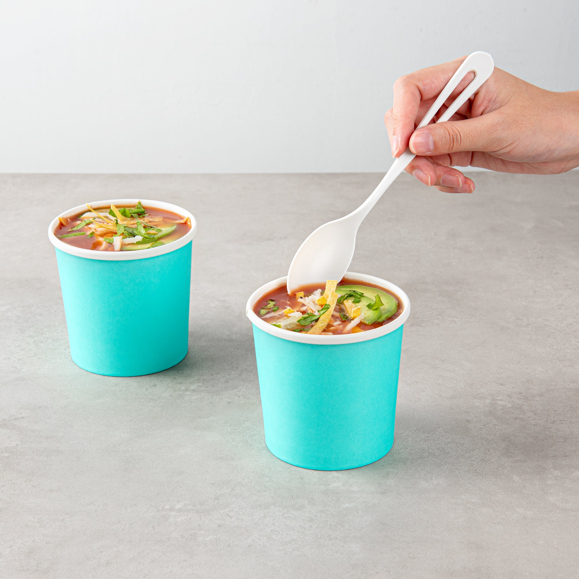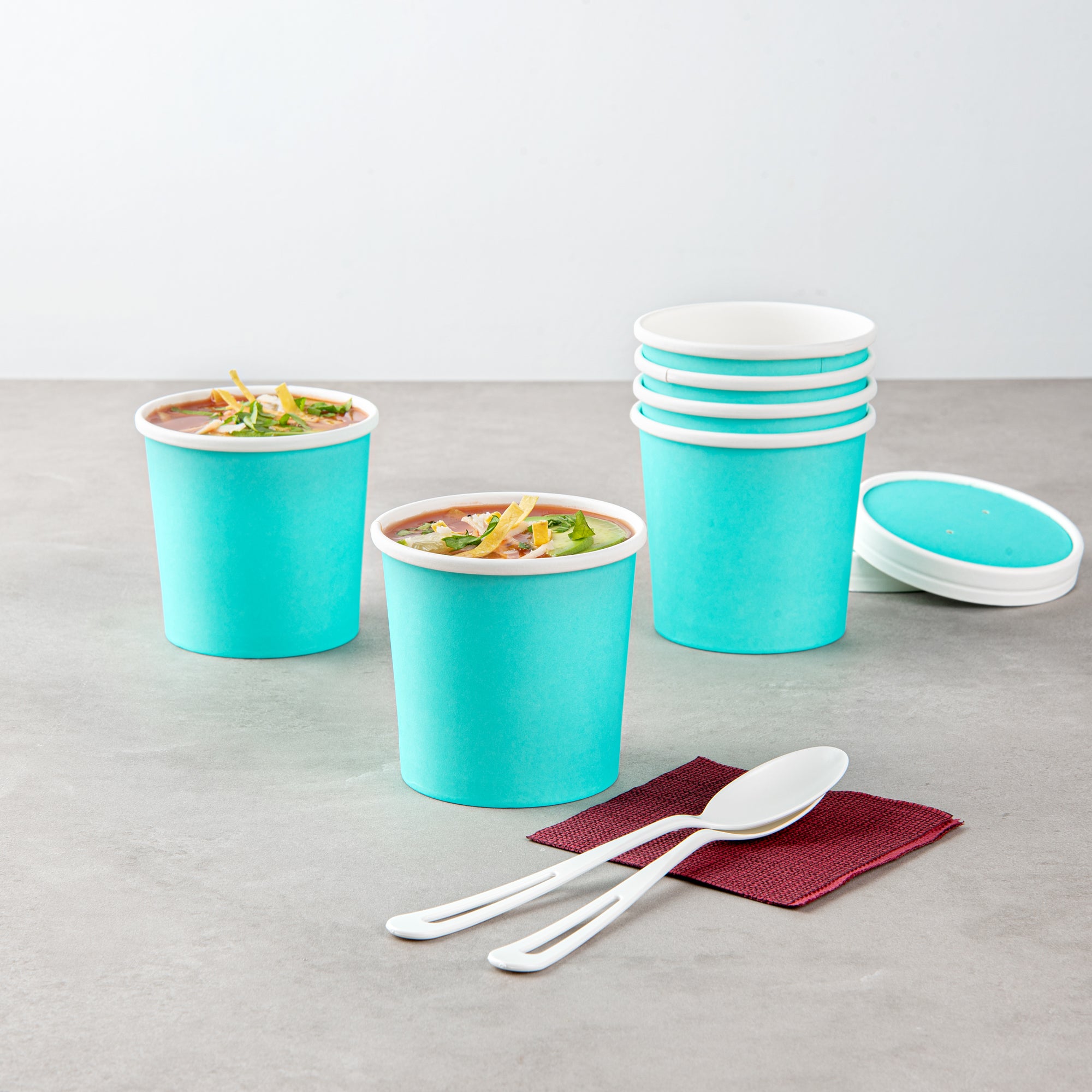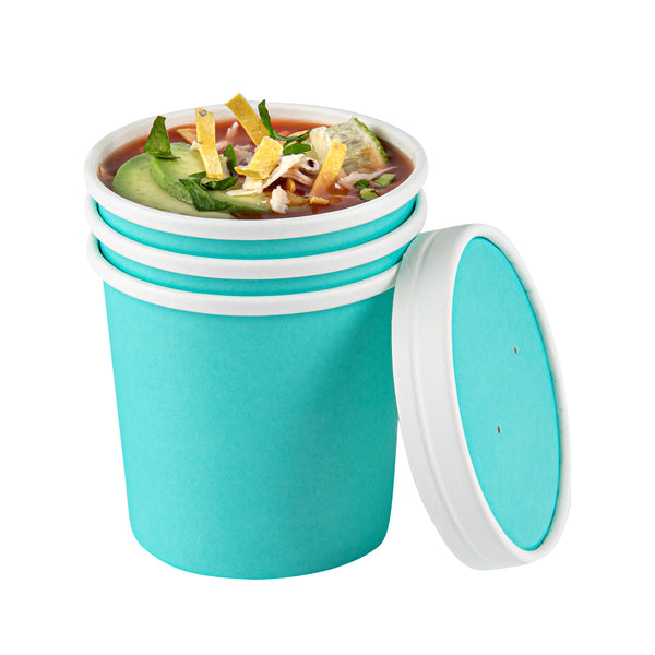 Crafted from sturdy paper that withstands both hot and cold foods, these paper soup containers are versatile. They retain their shape and are freezable.