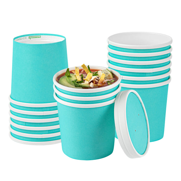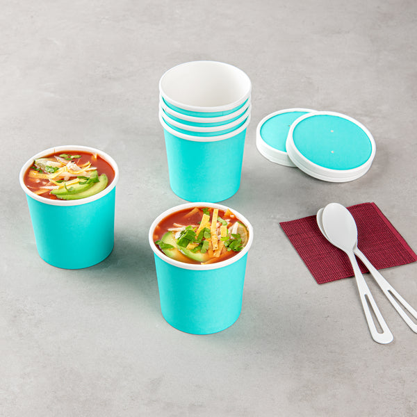Crafted from sturdy paper that withstands both hot and cold foods, these paper soup containers are versatile. They retain their shape and are freezable.