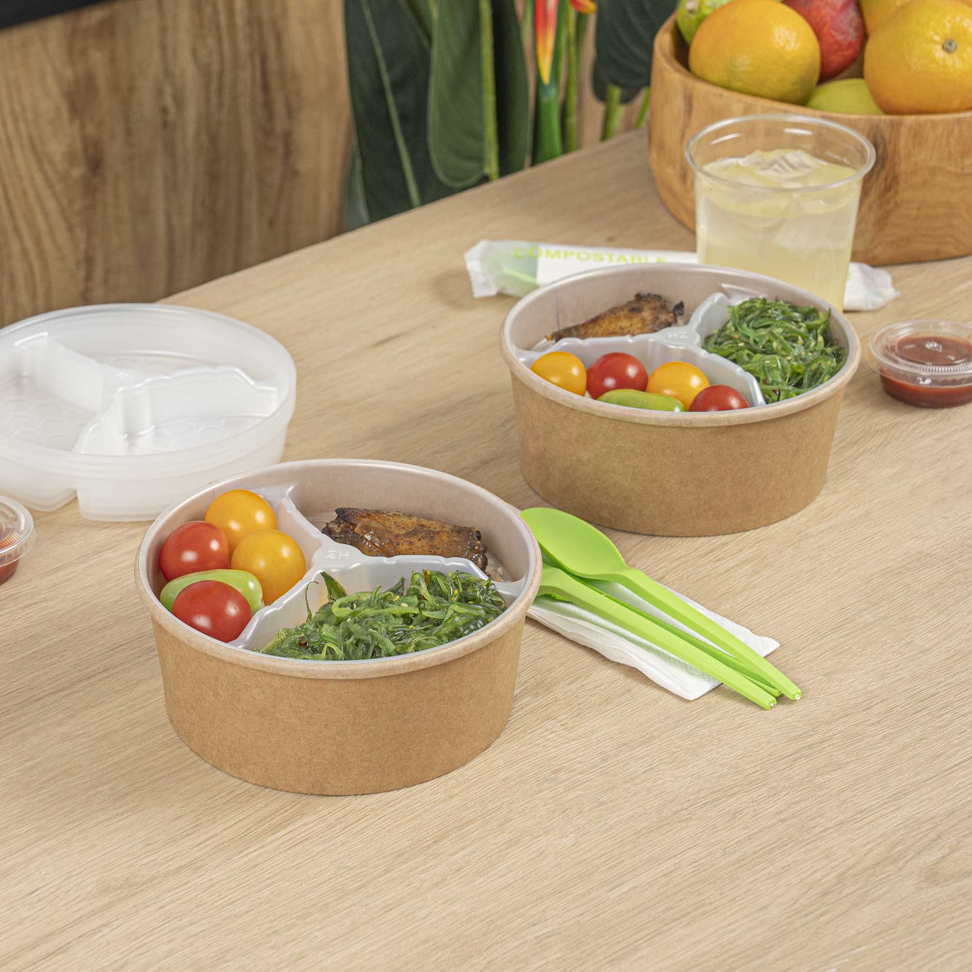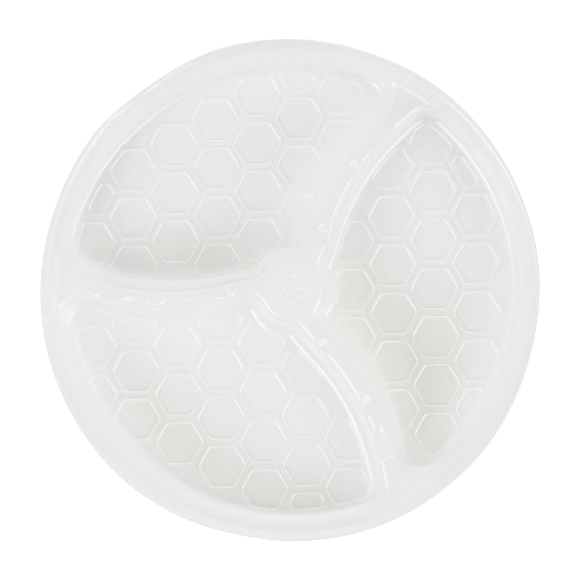 Elevate your food presentation and transport with our Bio Tek 15-ounce White Plastic 3-Compartment Insert Trays. Designed with 3 compartments, these cafeteria trays offer options for serving and separating different foods with ease. These food trays pair with our collection of matching Bio Tek take out containers for a perfect fit and organized food transport. Designed to be microwavable, these insert trays allow you to easily reheat your meals without hassle. Made from premium plastic, these catering trays are suitable for serving both hot and cold food items. For easy cleanup, these serving trays are disposable and can be discarded after use. These disposable serving trays are recyclable, offering an environmentally friendly way to serve meals. Measuring 6.5 inches in length by 6.5 inches in width by 1 inch in height, these white trays have a capacity of 15 ounces. Sold in a 200 count box. Containers are available and sold separately.