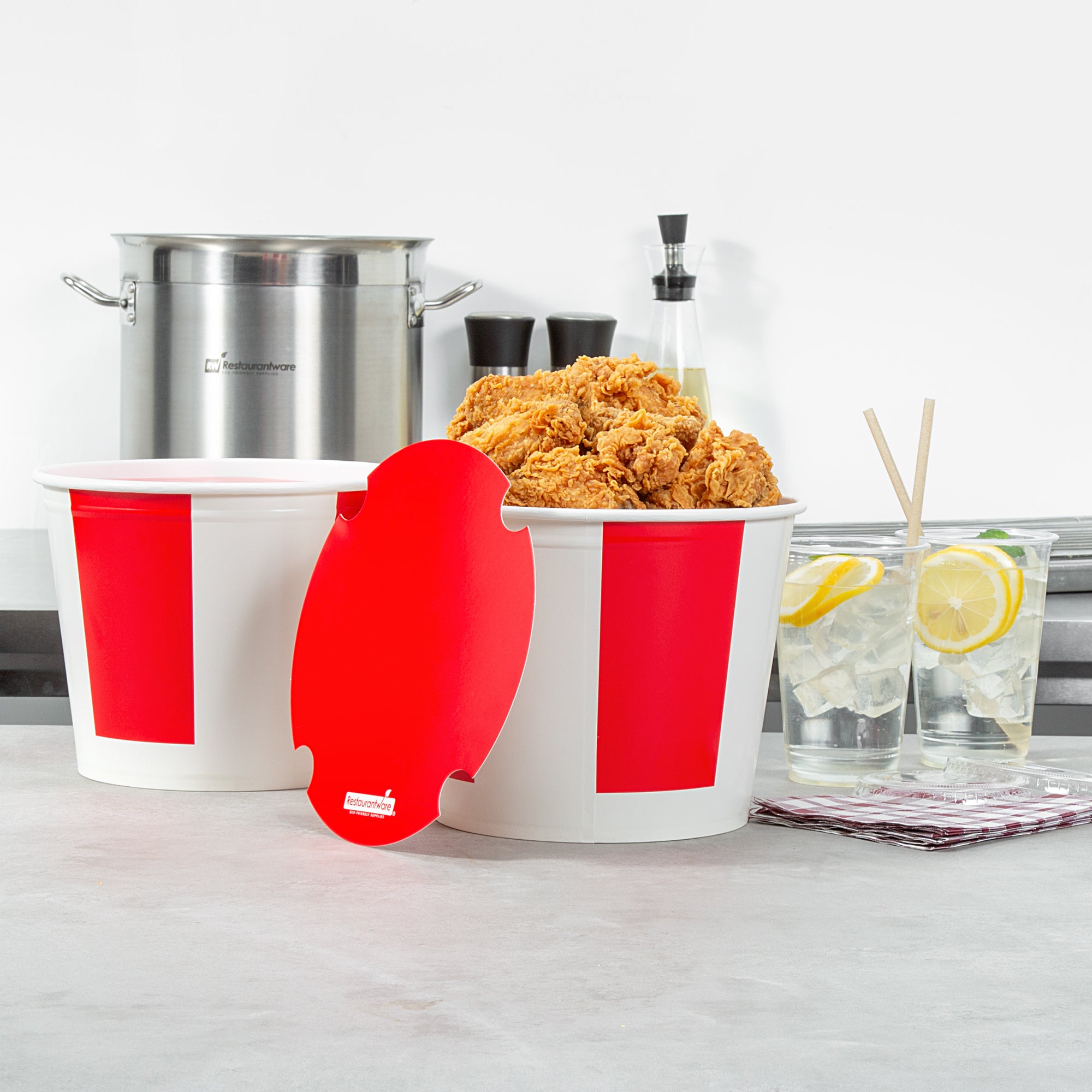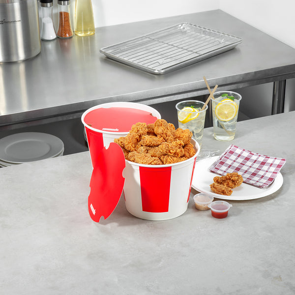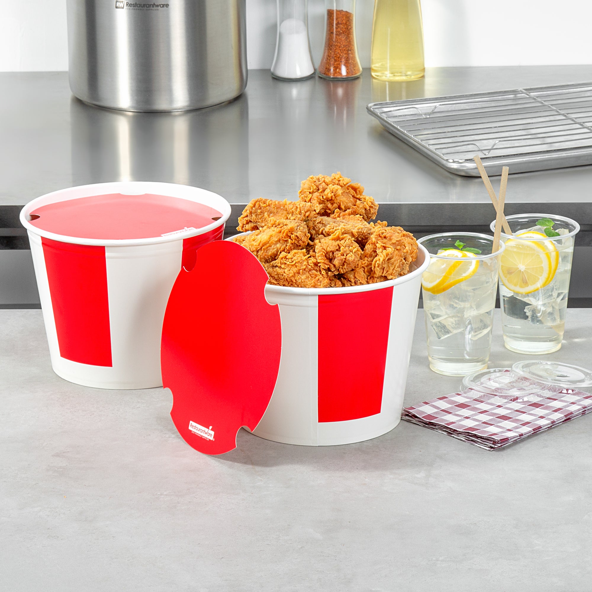 150 OZ RED AND WHITE PAPER CHICKEN BUCKET - WITH LID