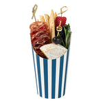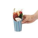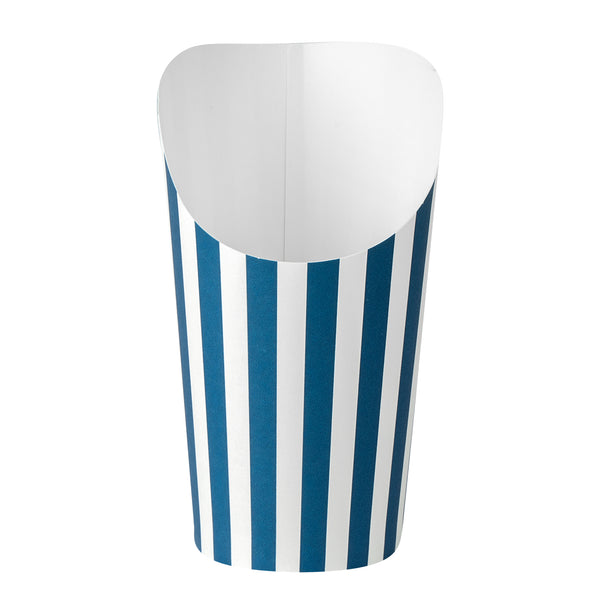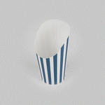 Redefine your snack presentation with our Bio Tek 16-ounce Round Blue and white Stripe Paper Incline Cups. Lined with a grease-resistant surface, these incline cups offer a smooth look by keeping oil stains at bay. The wide, inclining rim of these paper fry cups enables rapid scooping of fries from the warmer. Made from superior paper quality, these lightweight food containers allow customers to handle their snacks easily and maintain them in an upright position. The eye-catching blue and white stripe design of these disposable to go cups provides a snazzy look to your service. These space-saving, stackable french fry cups help to maintain an orderly storage area. Each recyclable paper food cup measures 3.5 inches in diameter by 5.75 inches in height and can hold 16 ounces of snacks. Sold in a 100 count box.