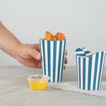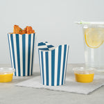 16 OZ ROUND BLUE AND WHITE STRIPE PAPER TO GO FRY CUP