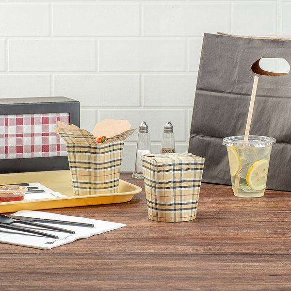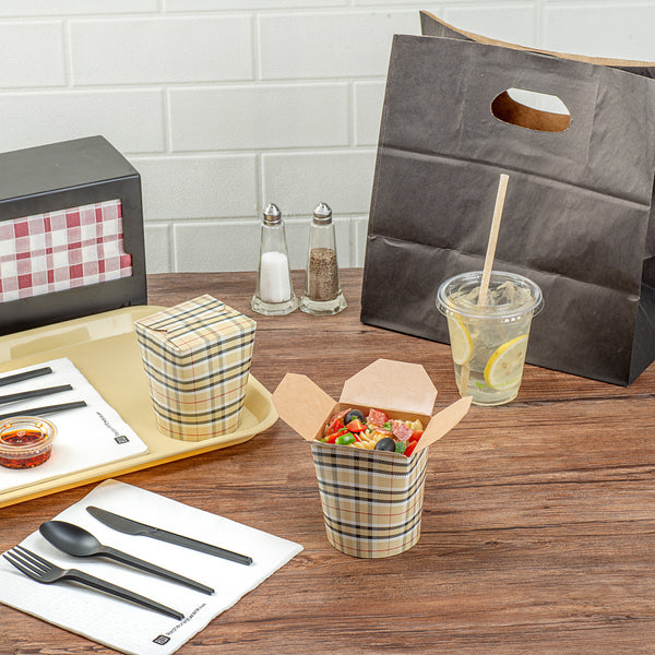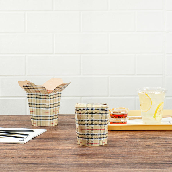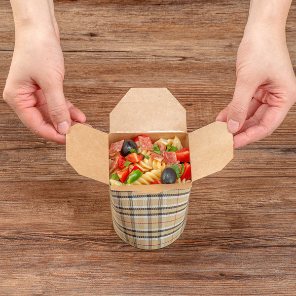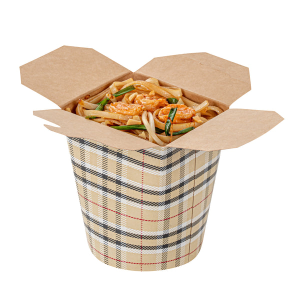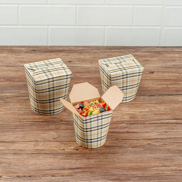 16 OZ ROUND PLAID PAPER NOODLE TAKE OUT CONTAINER