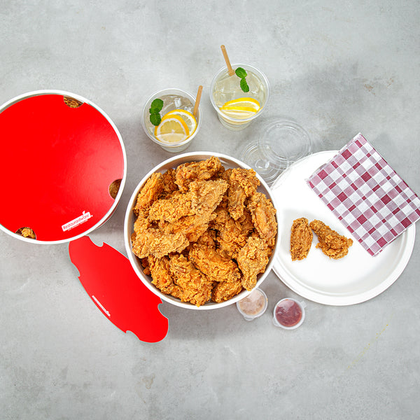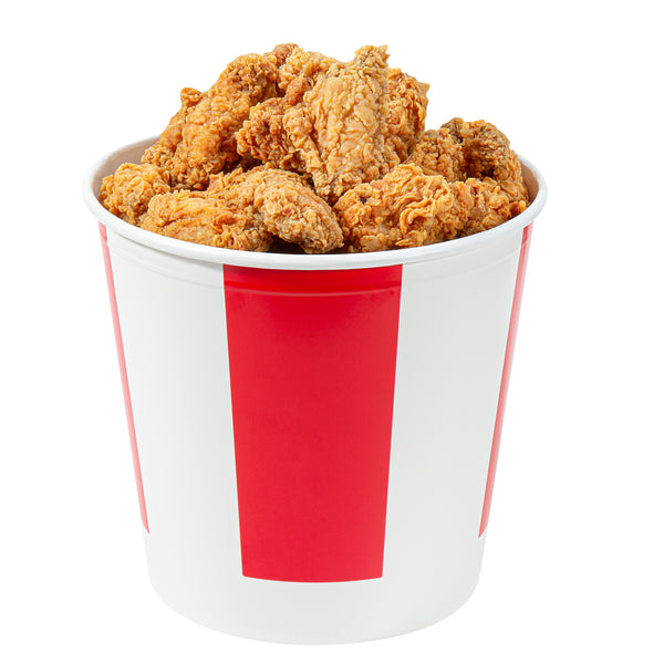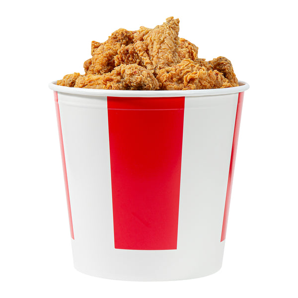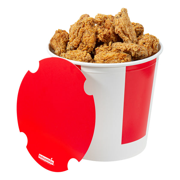 Introducing our Bio Tek 170-ounce Red and White Paper Chicken Buckets, designed to serve large portions with both efficiency and style. Made with a double PE coating, these durable paper chicken buckets are greaseproof, ensuring they block oil or grease from seeping through and keep surfaces clean. The included vented lid, made from single PE-coated paper, ensures excellent insulation, keeping food hot and fresh for take out orders and delivery. Perfect for restaurants and caterers, these chicken buckets with lids offer a reliable and visually appealing packaging solution. Our chicken buckets are recyclable, making them an eco-friendly choice for your food packaging needs. Featuring a striped red and white design, these disposable chicken buckets enhance the presentation of your food and leave a lasting impression on customers. These freezable chicken buckets with lids are perfect for conveniently storing leftovers. Measuring 8.66 inches in diameter and by 8.27 inches in height, these food storage containers offer ample space for your delicious offerings. Sold in a 100 count box.
