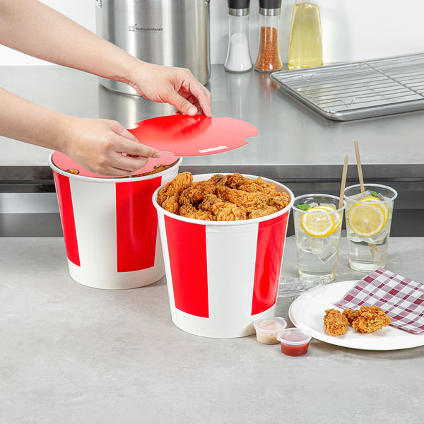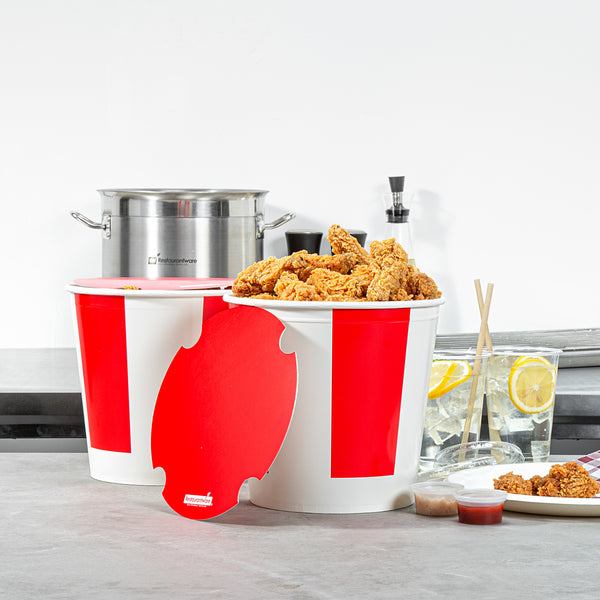 170 OZ RED AND WHITE PAPER CHICKEN BUCKET - WITH LID
