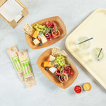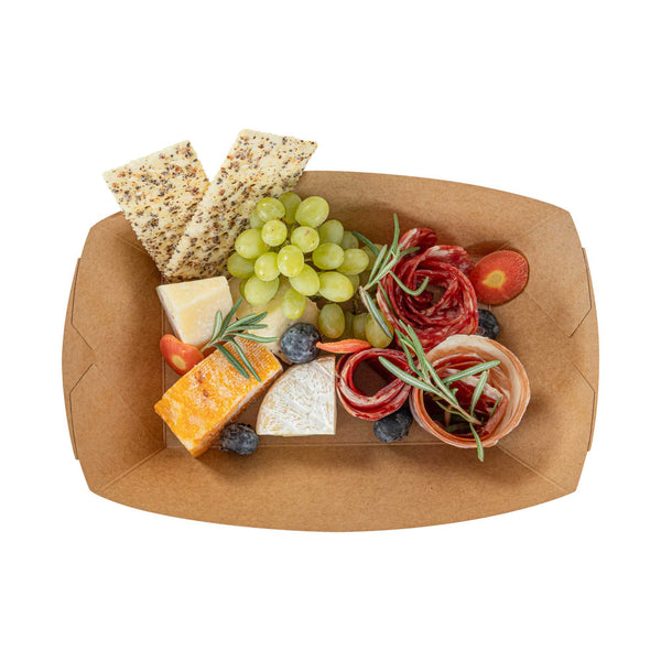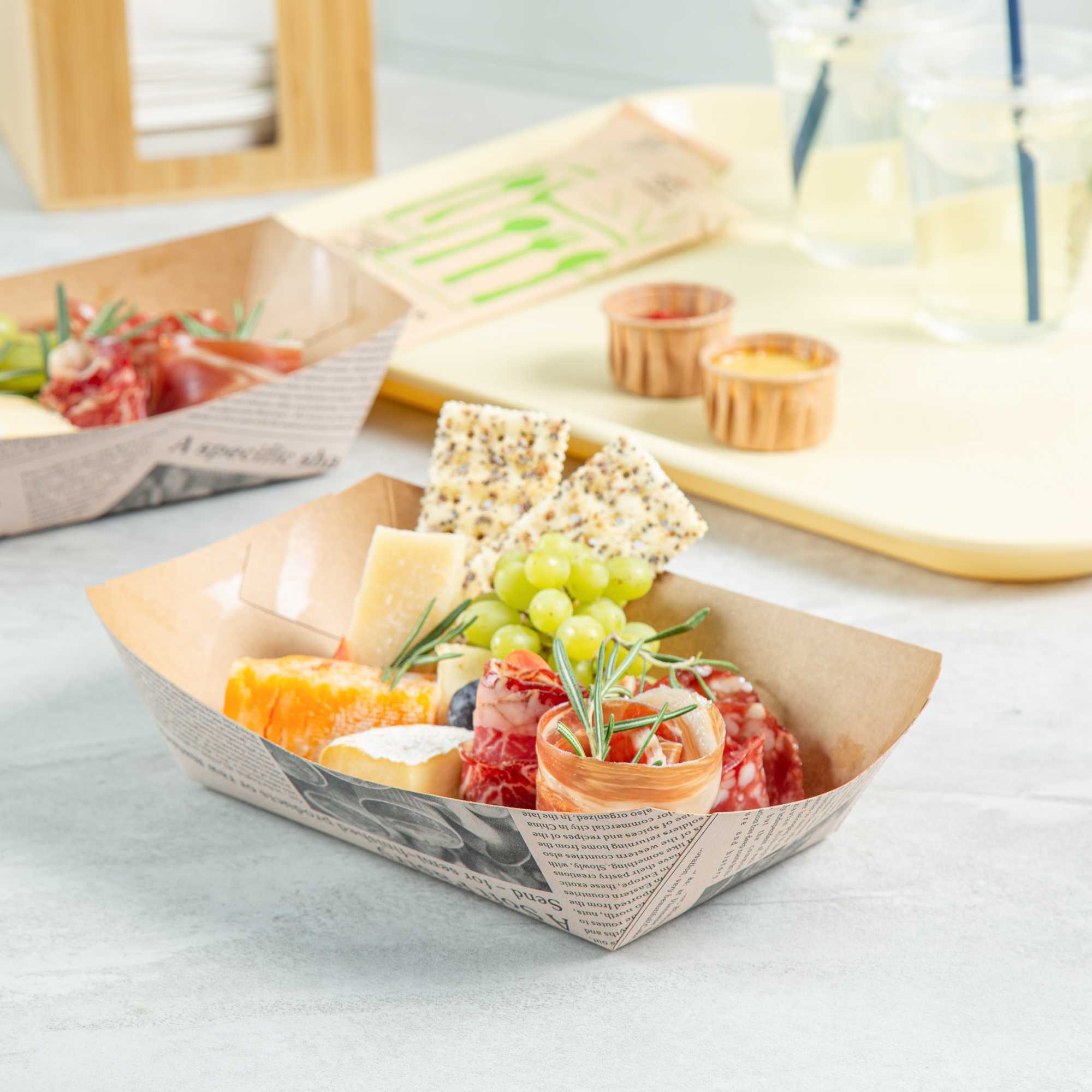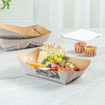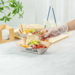 These paper food boat trays have an ultra-portable design to easily serve meals. Ideal for food trucks, family parties, and catering companies!