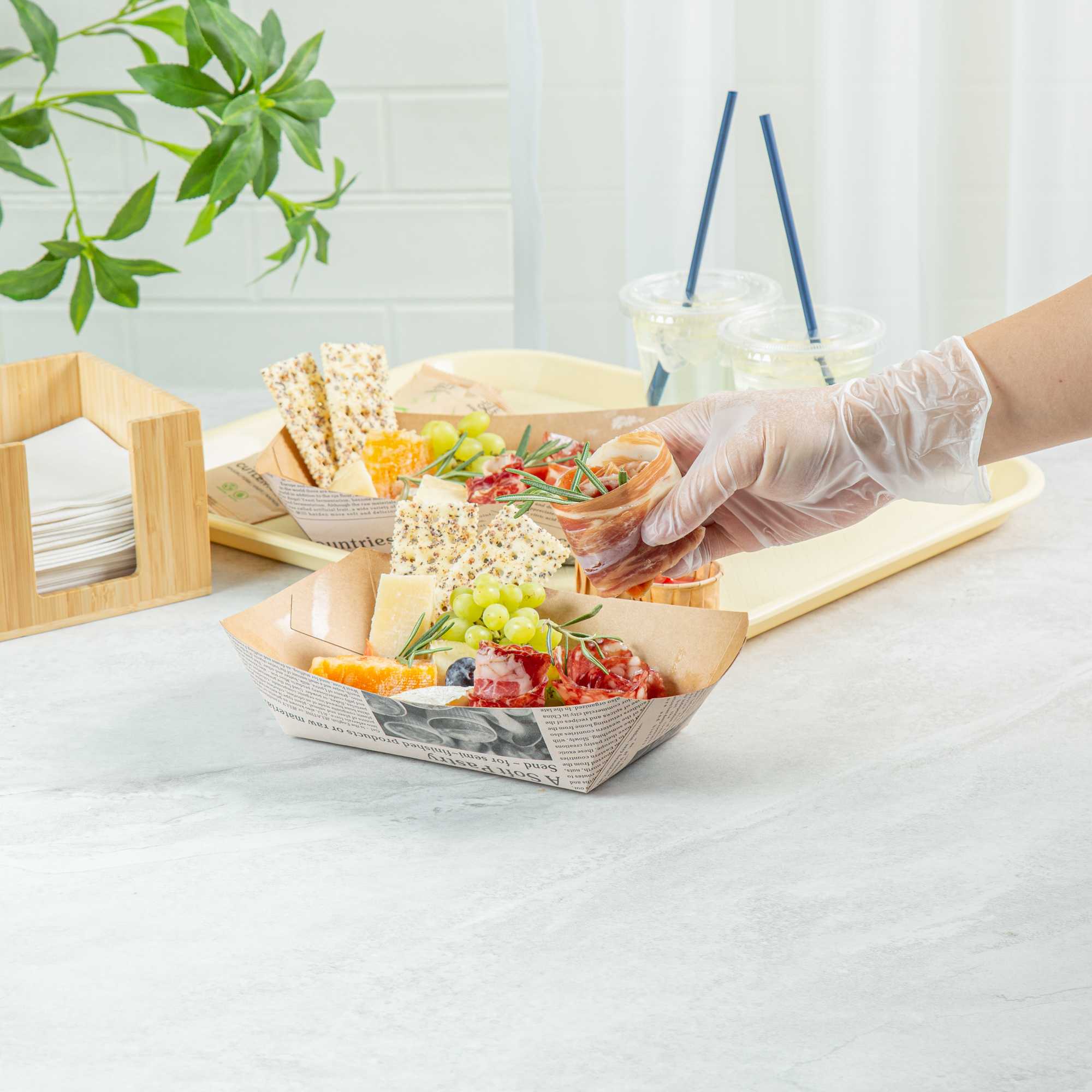 With numerous options to choose from, these paper food trays come in multiple colors to complement all kinds of food service establishments. Pick the paper boat that best fits your aesthetic!