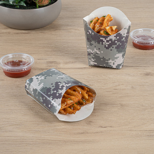 2 OZ CAMOUFLAGE PAPER FRY CUP / SNACK CONTAINER