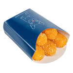 Ensure snacks remain tidy and appealing with greaseproof packaging. Bio Tek Blue Paper Food Cup offers a greaseproof lining that prevents oils from seeping through, maintaining a clean appearance on your surfaces. With its wide and angled rim, this paper food cup allows for quick and easy scooping of snacks, enhancing your serving efficiency. Crafted from strong paper, it measures 3.94 inches in length, 2.64 inches in width, and 3.54 inches in height, ensuring a secure way to transport food items without spills or mess. This paper serving cup is both cold and hot food friendly, making it versatile for various culinary applications. Additionally, its recyclable nature supports environmentally conscious practices. Elevate your snack presentation and streamline operations with this greaseproof paper cup. Sold in a 100 count box.