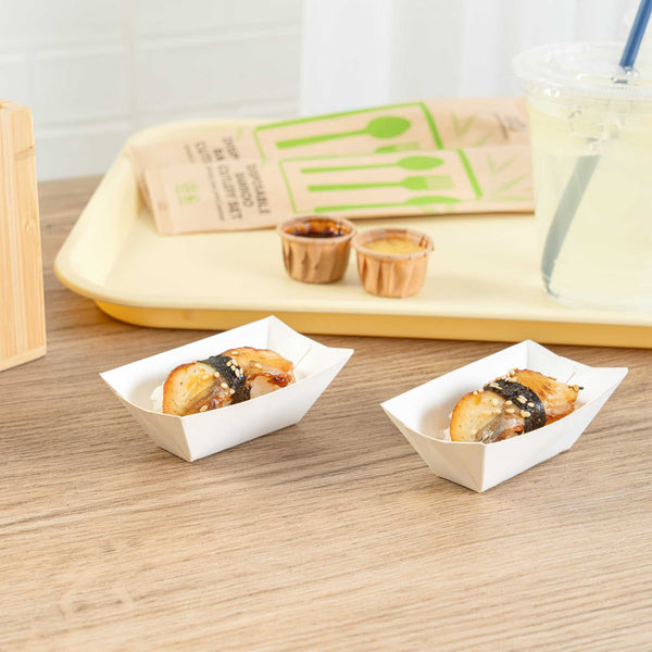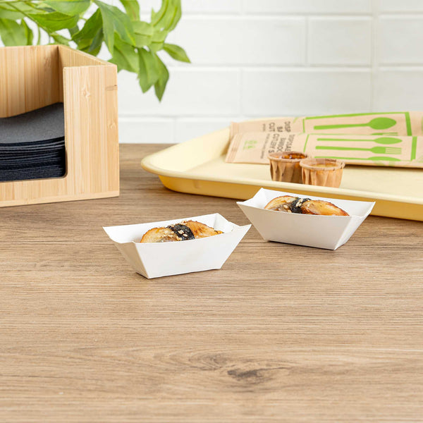 Made from premium paper, these disposable paper food boats are sturdy and reliable to support hefty and saucy dishes. Don't worry about your serving supplies breaking!