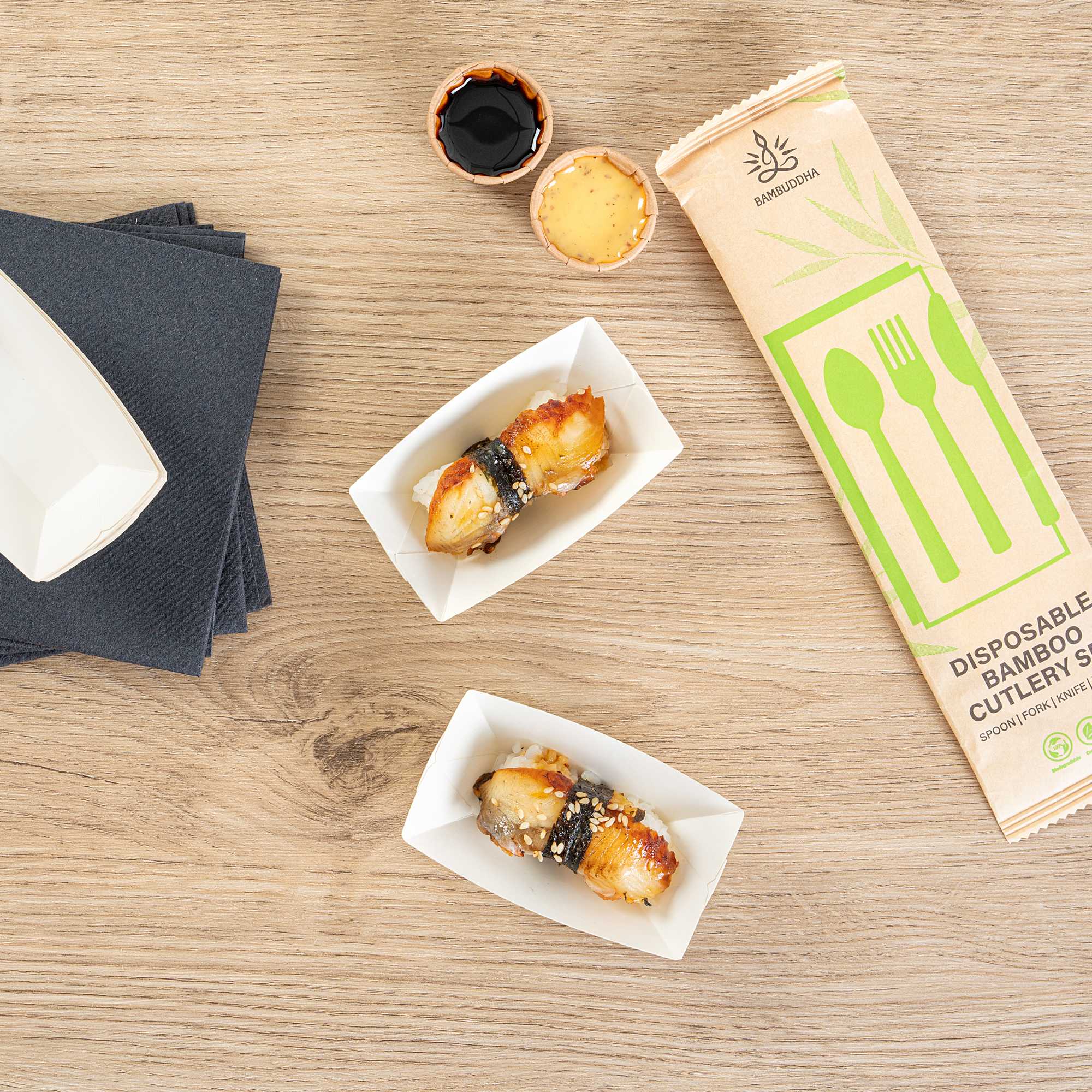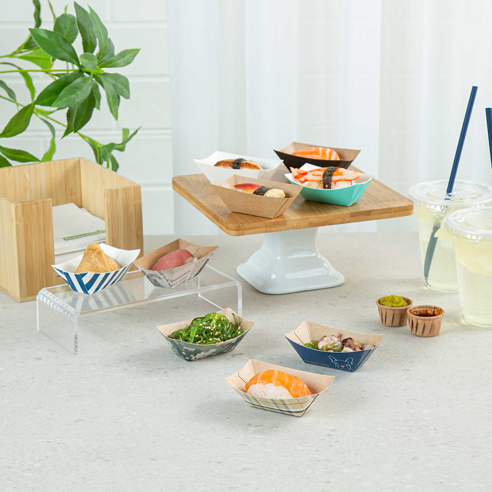 For a simple cleaning process for establishments and guests, these paper food boats are sustainably disposable. Reduce your impact on the environment!
